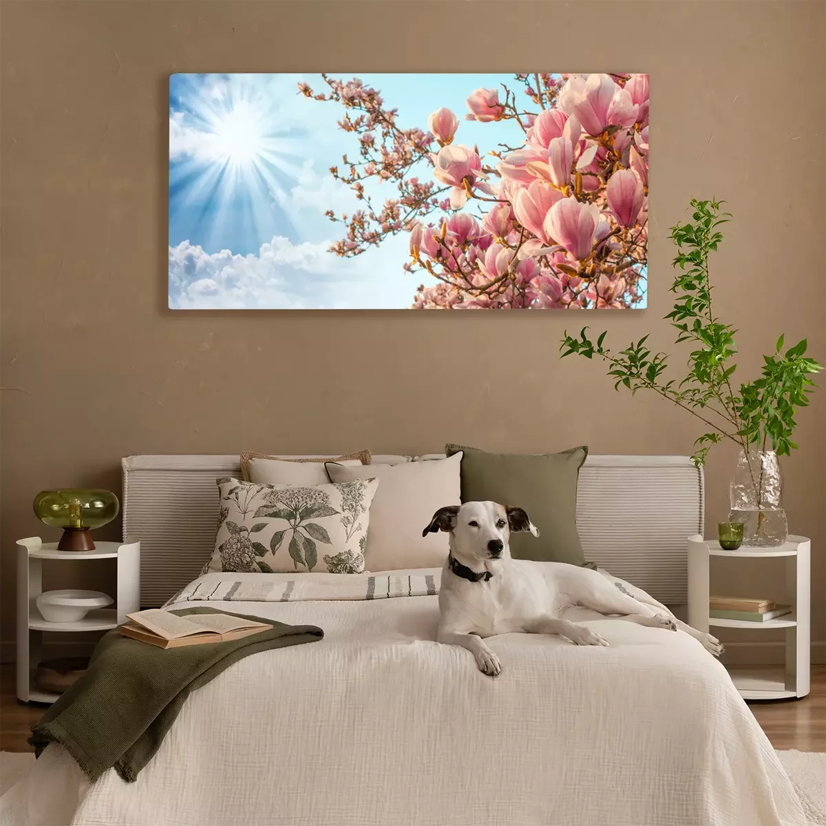 Tableau  Magnolia arbre fleur avec le ciel coloré sur fond