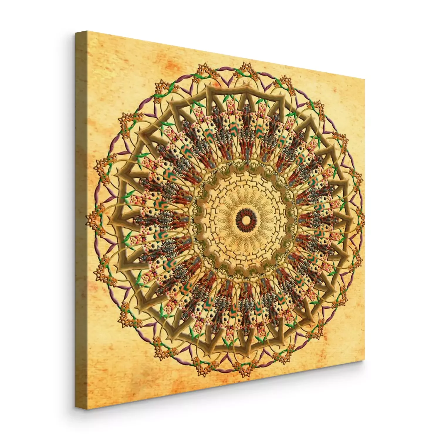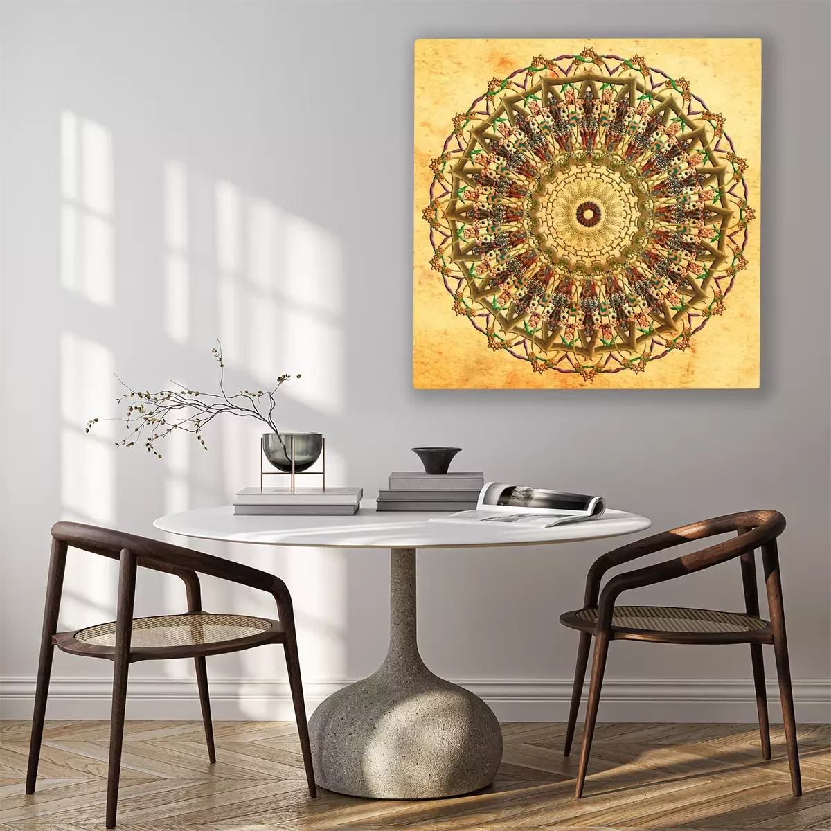 Tableau : mandala colorful vintage art, ancient Indian vedic background design, old painting texture with multiple mathematical shapes, seamless pattern decoration for wall painting