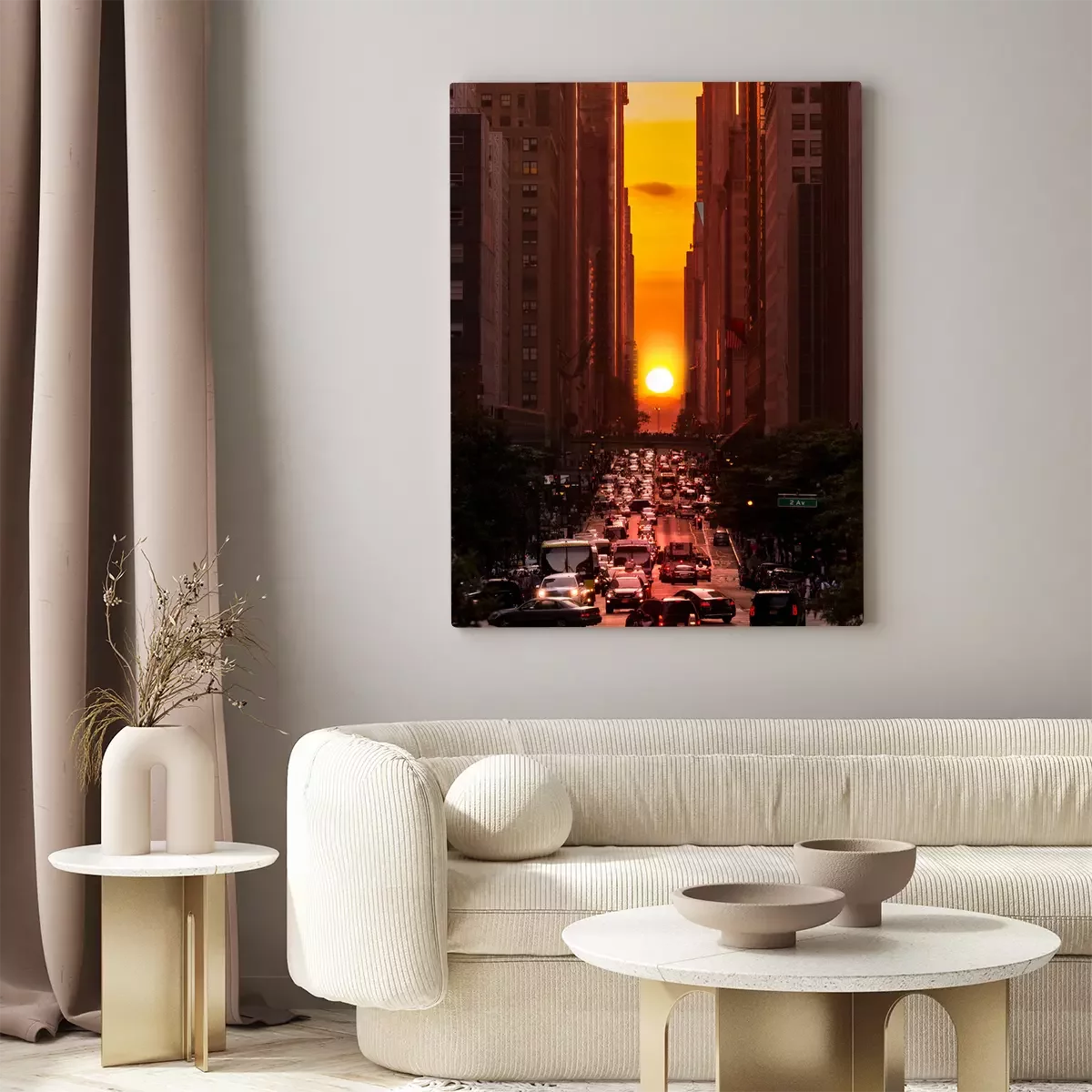 Tableau  Manhattanhenge à New York le long de la 42ème rue