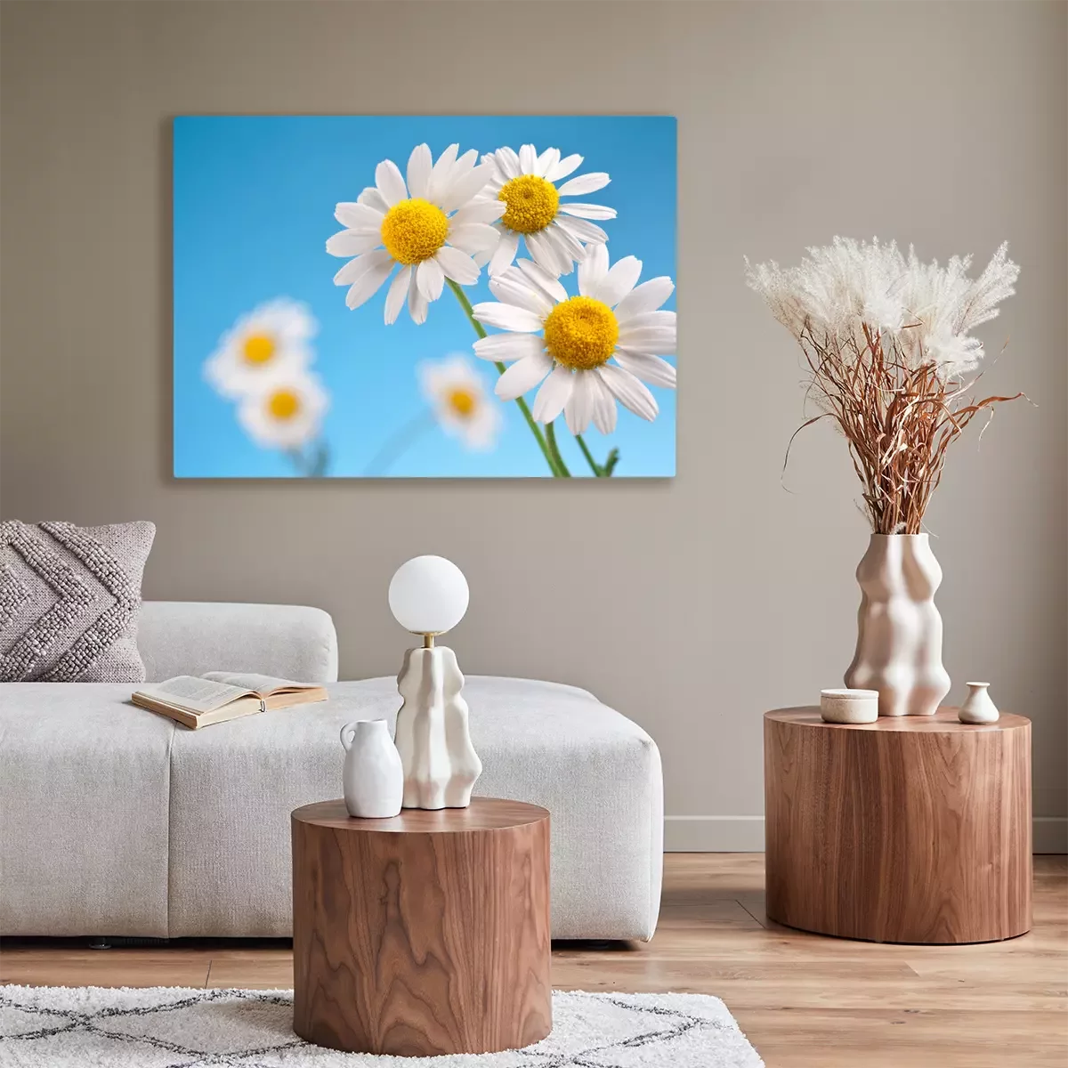 Tableau  Marguerites sauvages sur un ciel bleu.