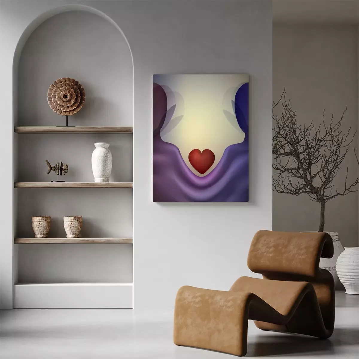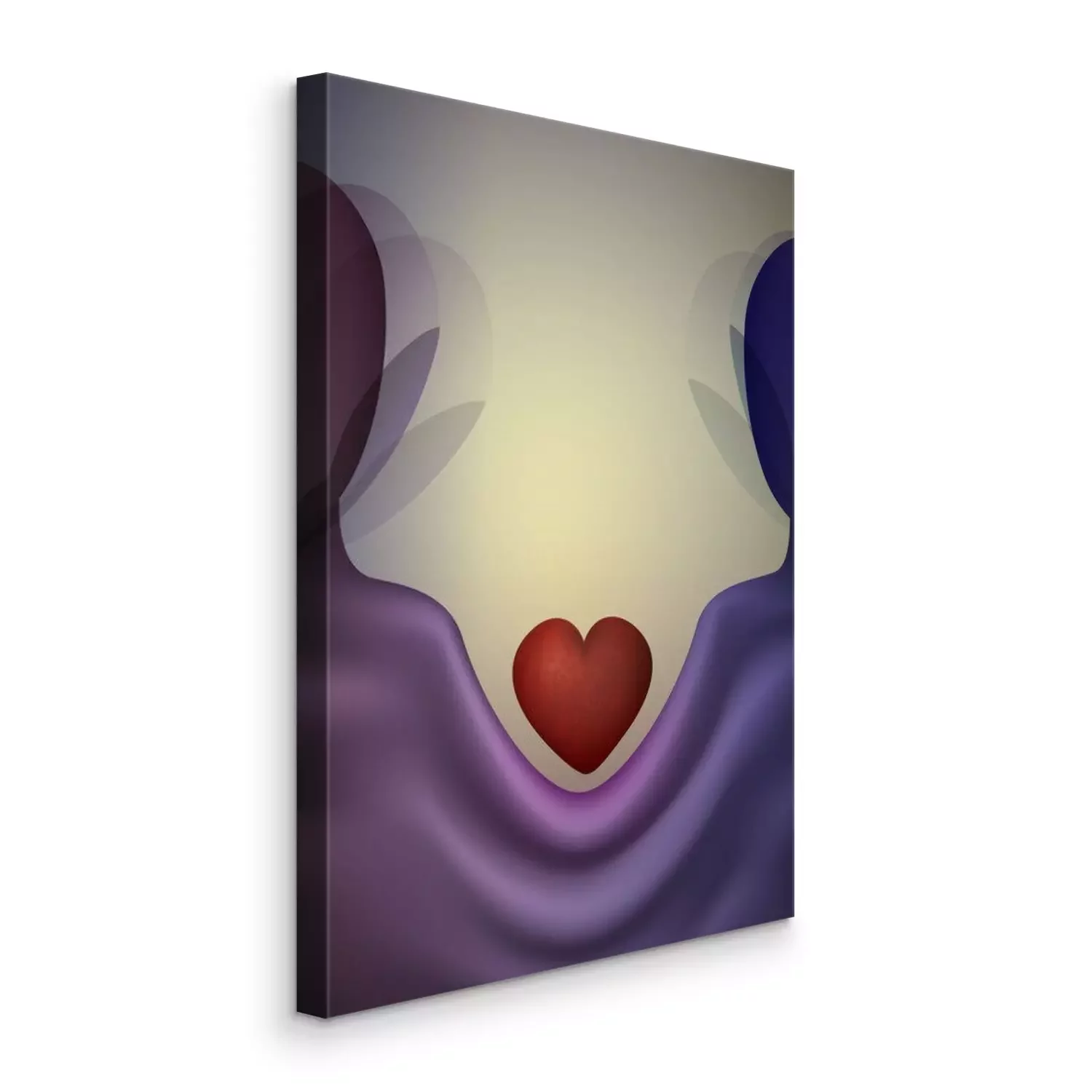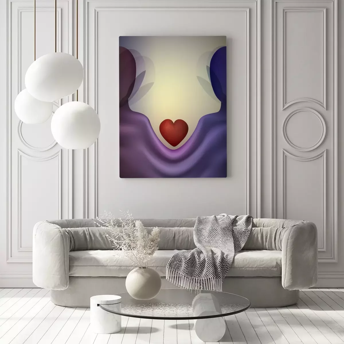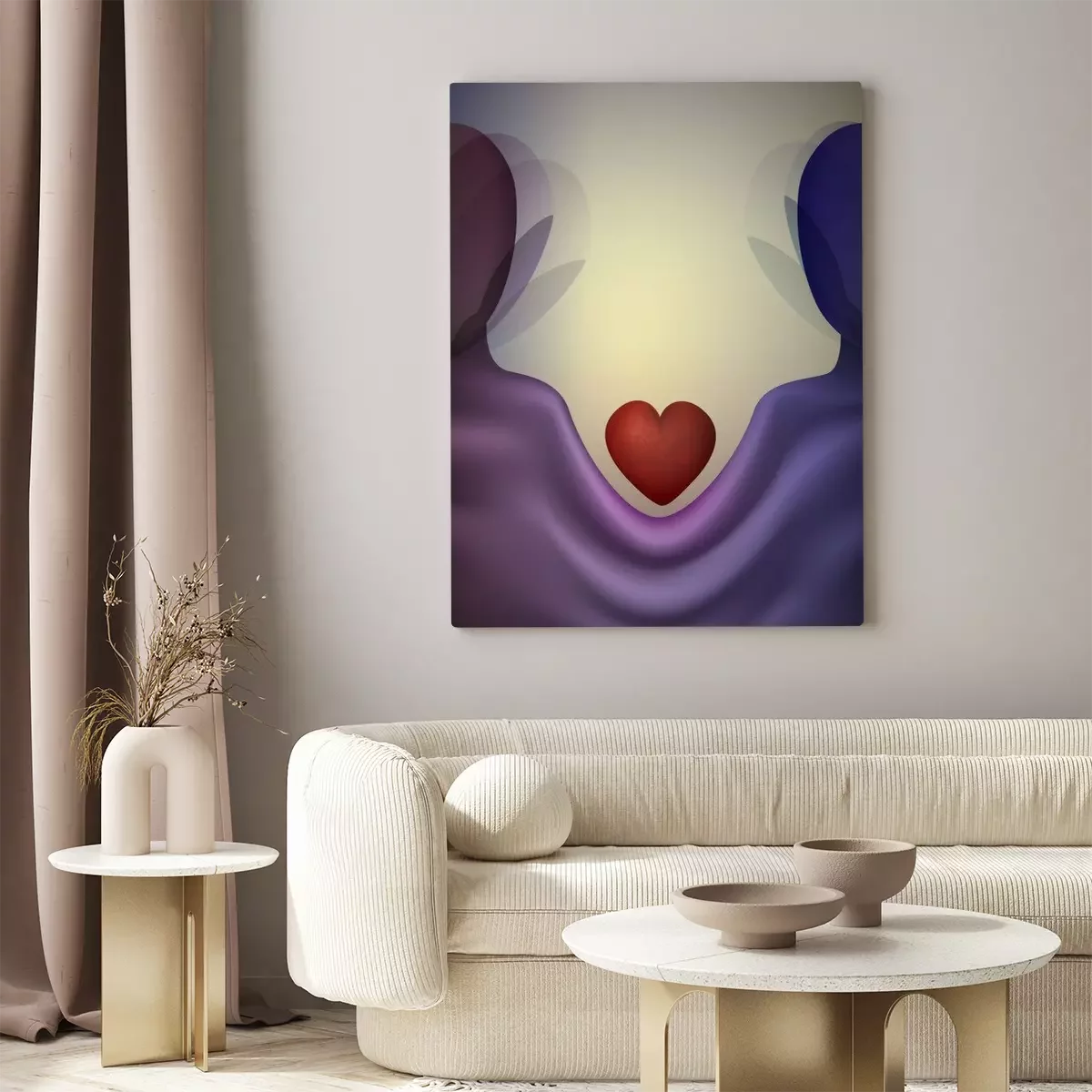 Tableau  marriage icon, people in love, blue man and red woman in love with heart in the middle, surrealistic romantic dream, together forever, couple in love concept,