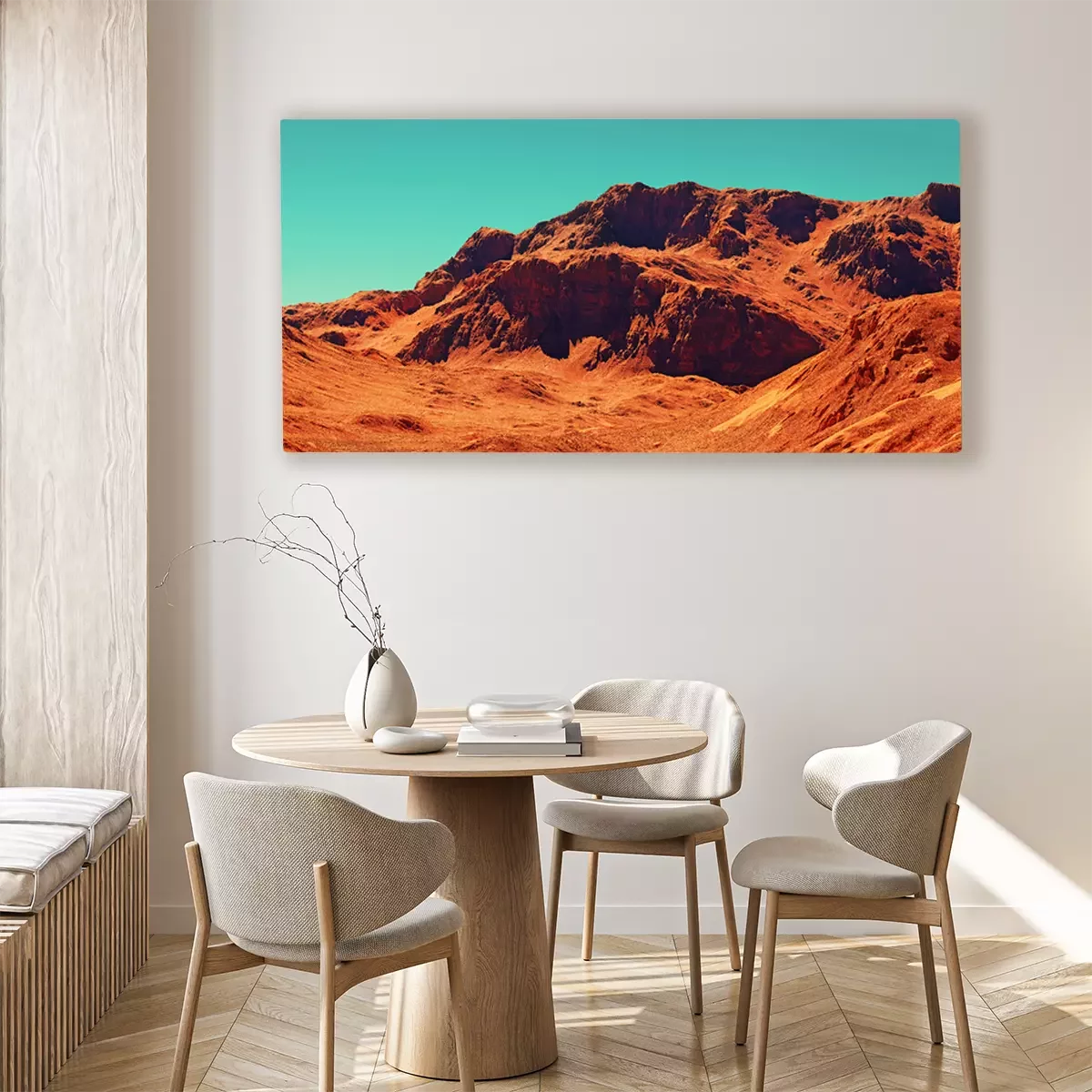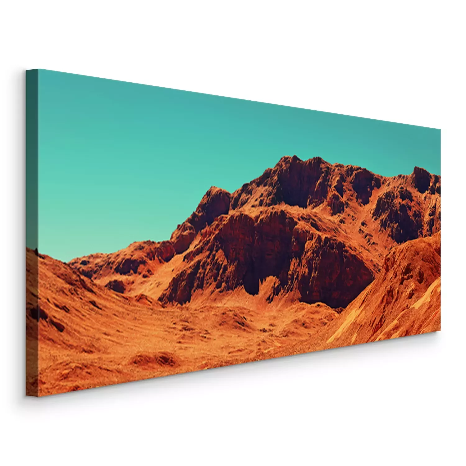Tableau  Mars landscape, 3d render of imaginary mars planet terrain, science fiction illustration.