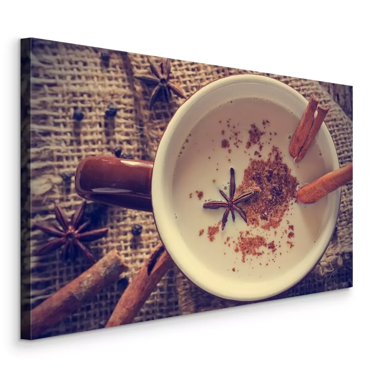 Tableau  masala chai thé aux épices et l'anis étoilé, le bâton de cannelle