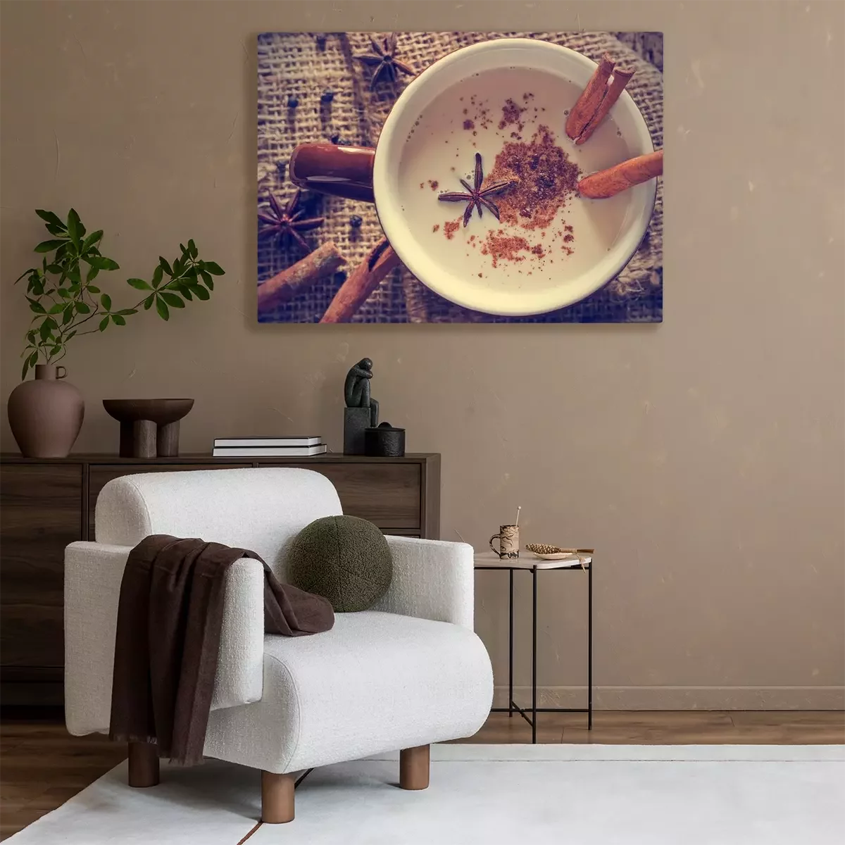 Tableau : masala chai thé aux épices et l'anis étoilé, le bâton de cannelle