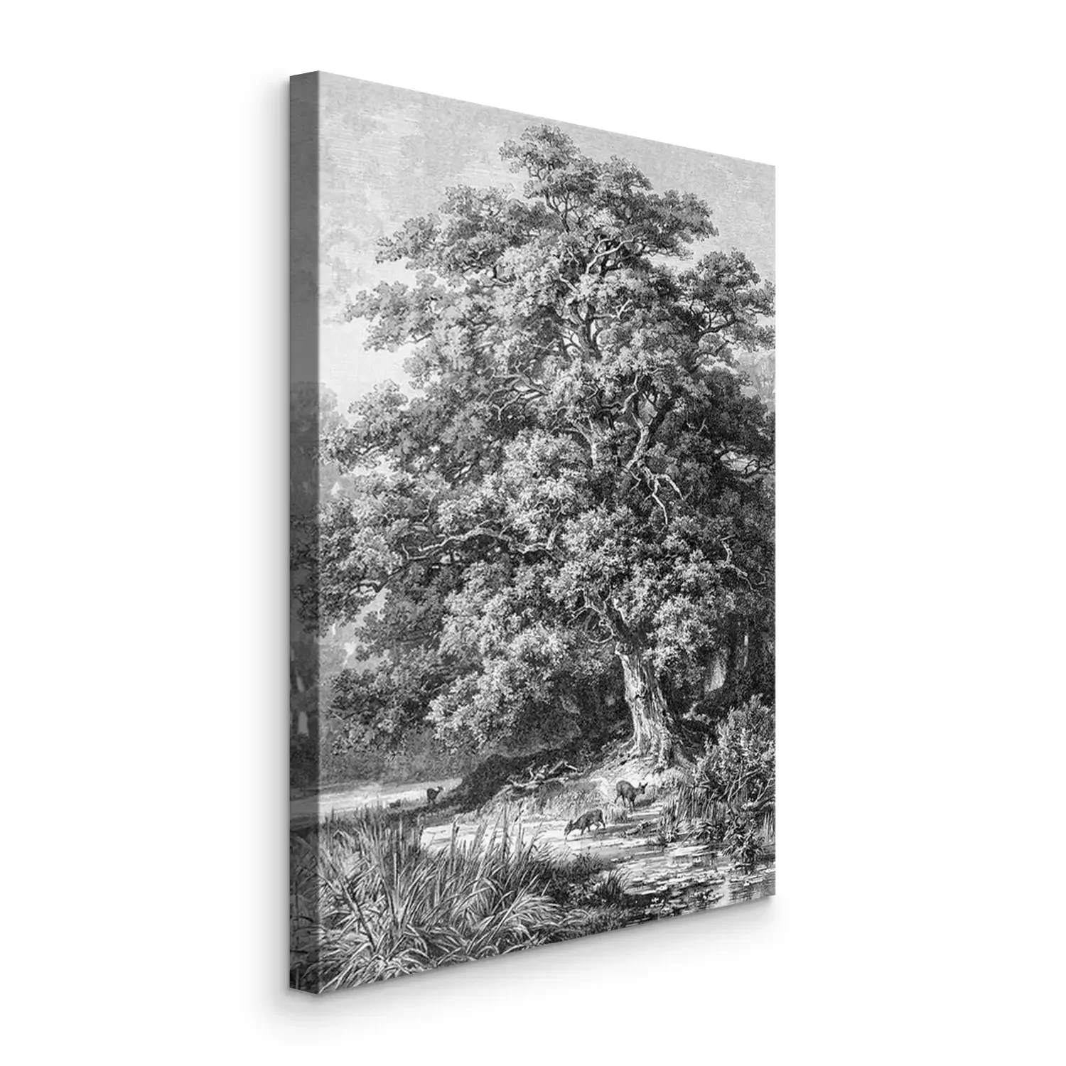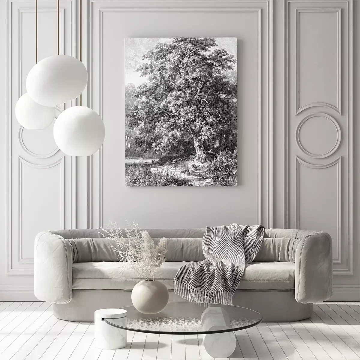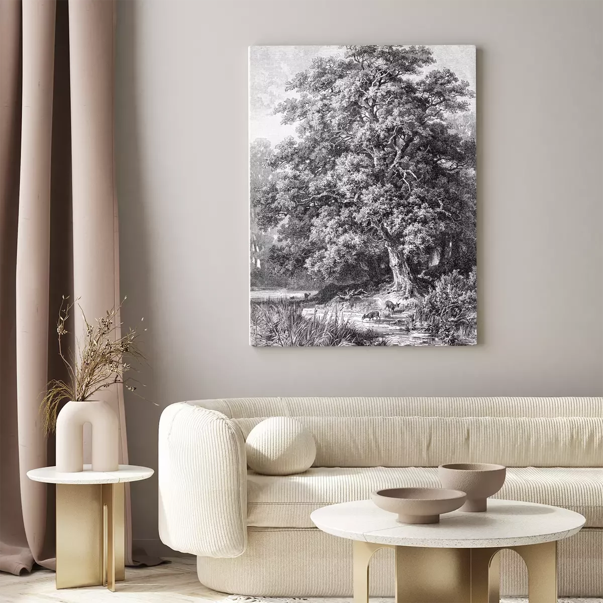 Tableau  Mère nature et animaux de la forêt en noir et blanc