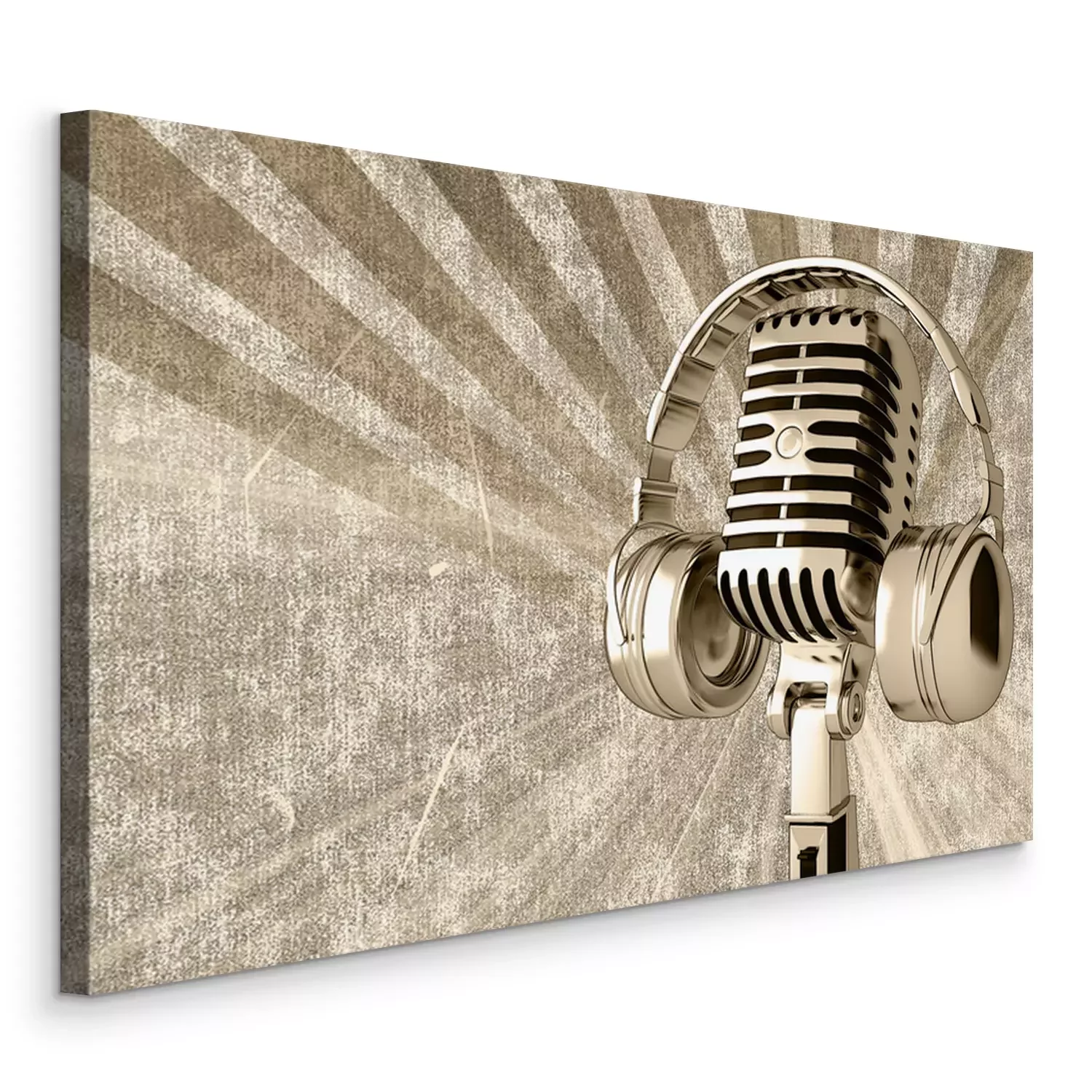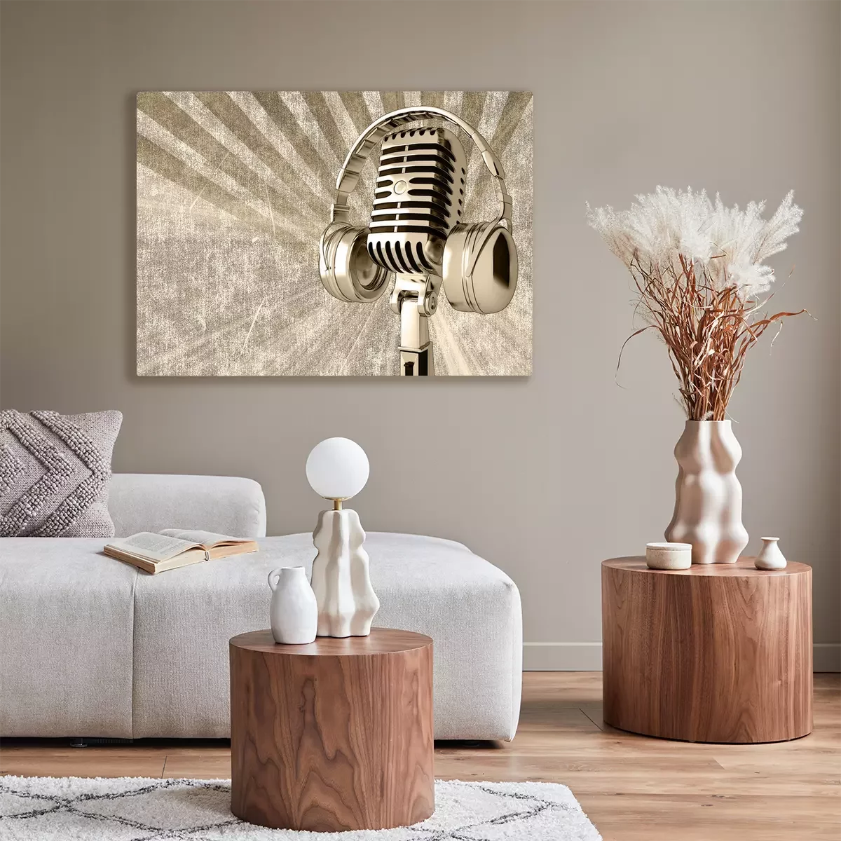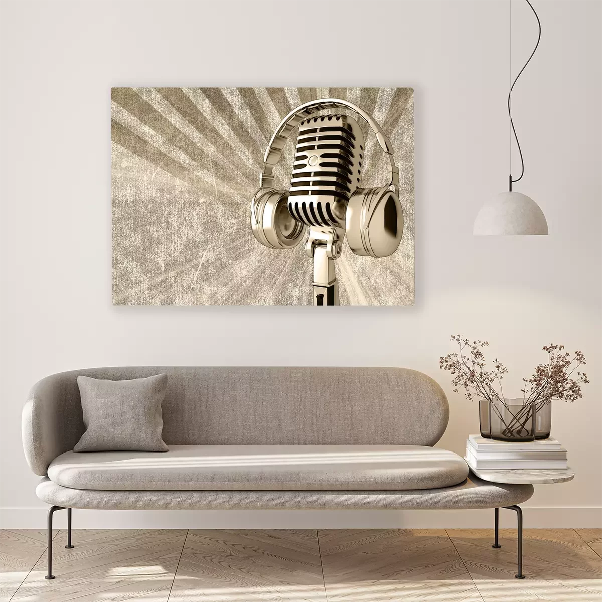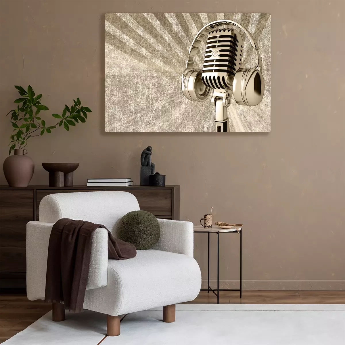 Tableau  Microphone avec des écouteurs sur le vieux fond