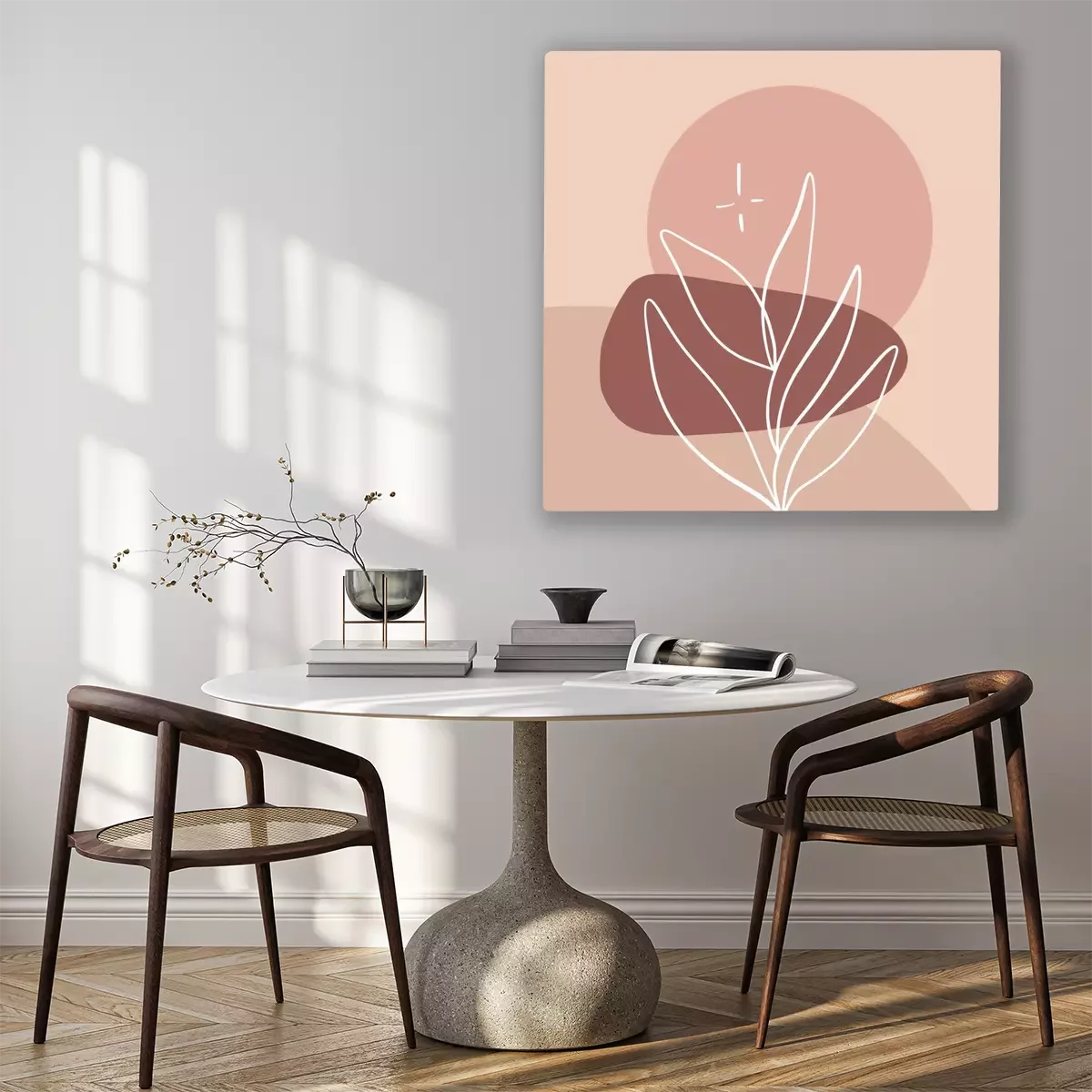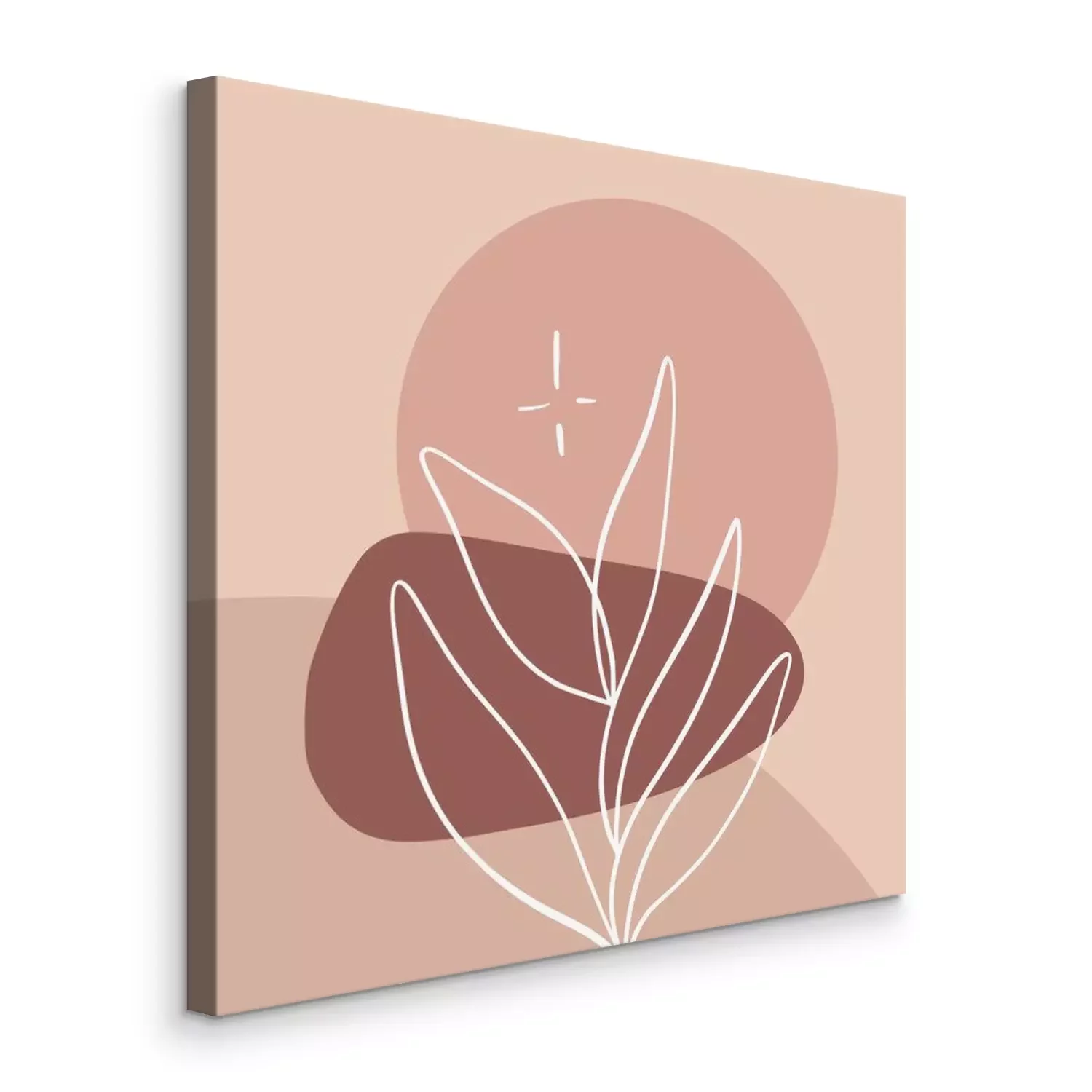 Tableau : Minimalist abstraction with leaf and geometric shapes. Contemporary scandinavian style. Flat design collage terracotta color composition. Good for posters, postcards, social media banners