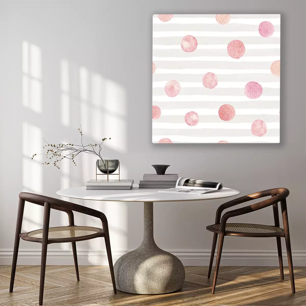 Tableau  Modèle aquarellé à la main avec des points et des traits roses brillants sur le fond blanc