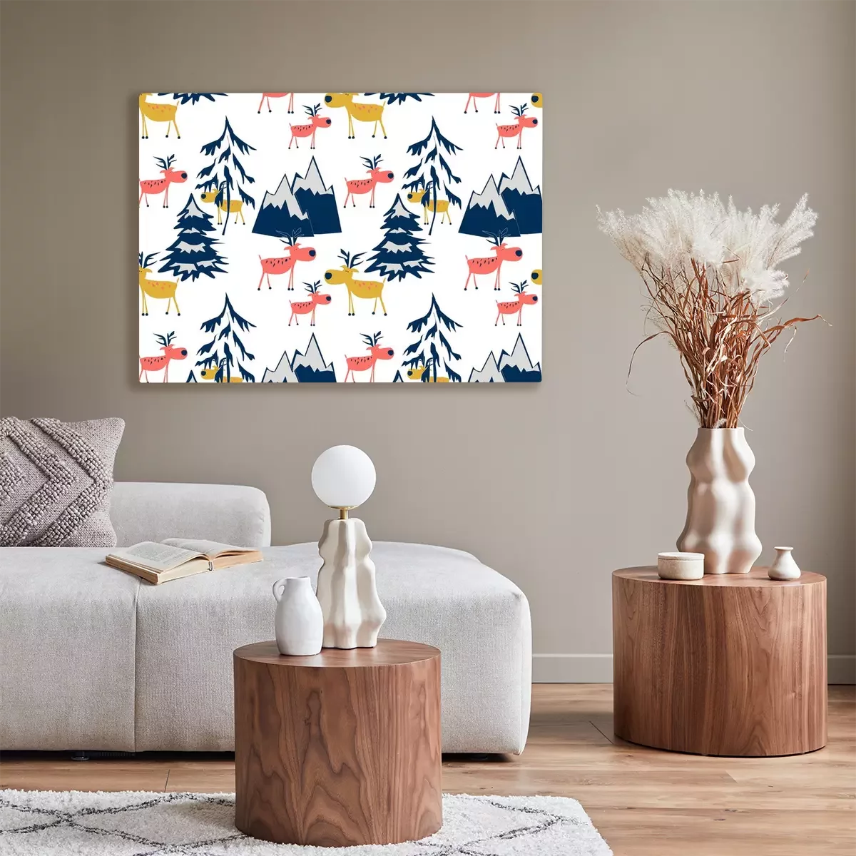 Tableau  Modèle d'hiver sans soudure. Cartoon Deer dans la forêt d'hiver.