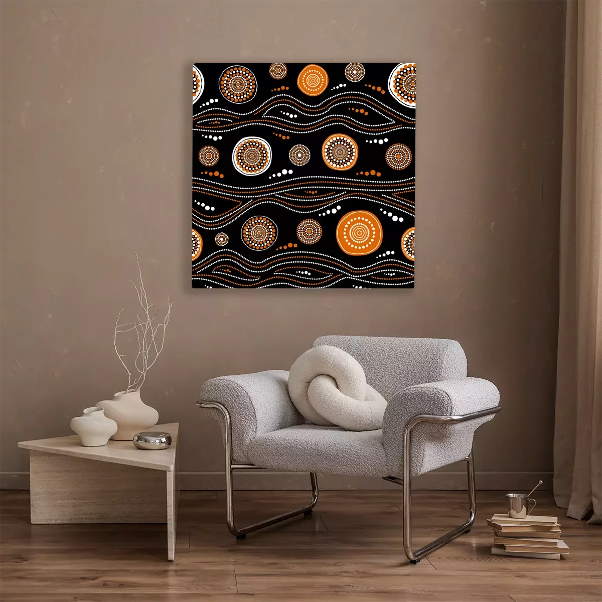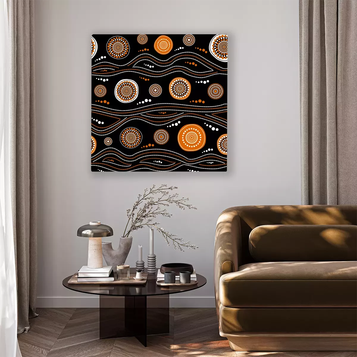 Tableau  Modèle de vecteur sans couture aborigène australien avec des cercles en pointillés, des anneaux et des rayures tordues