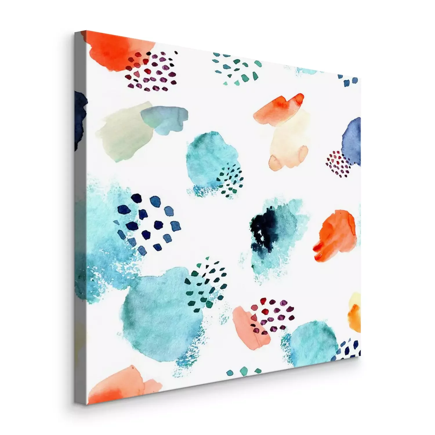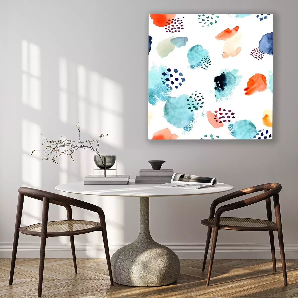 Tableau  Modèle sans couture aquarelle, style de mode dot memphis, design répétitif de fond lumineux. Formes de brosse modernes peintes à la main.