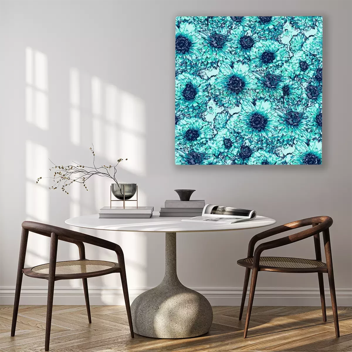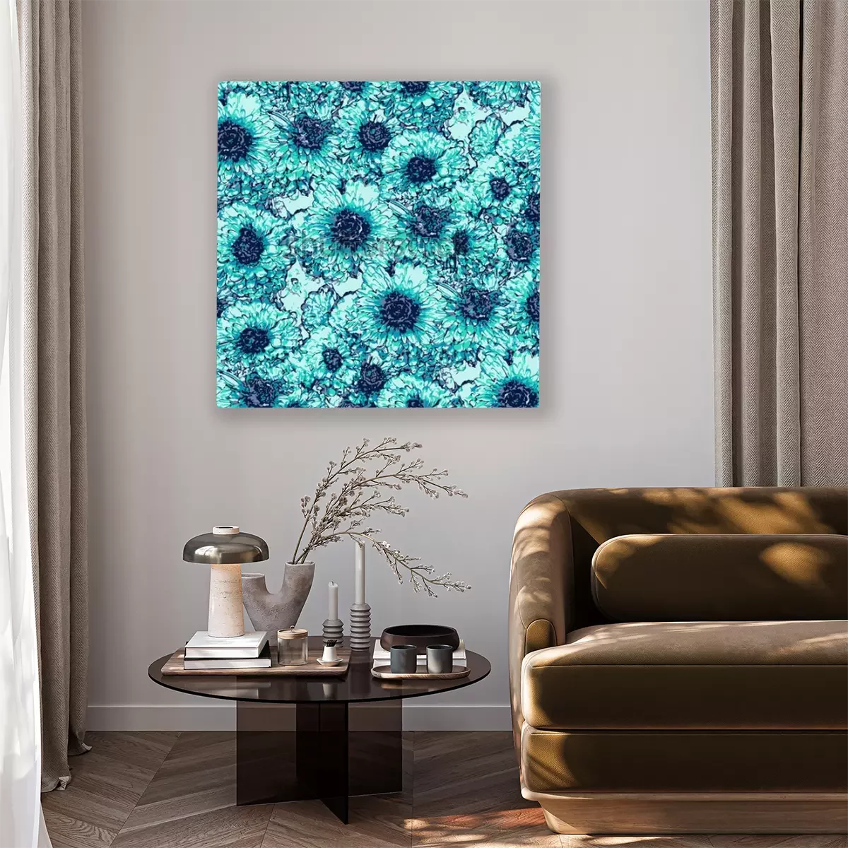 Tableau  Modèle sans couture avec des fleurs de chrysanthèmes turquoises