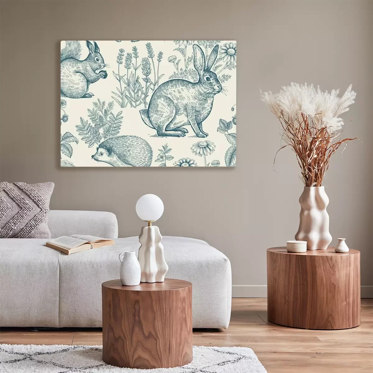Tableau  Modèle sans couture avec les animaux et les fleurs.