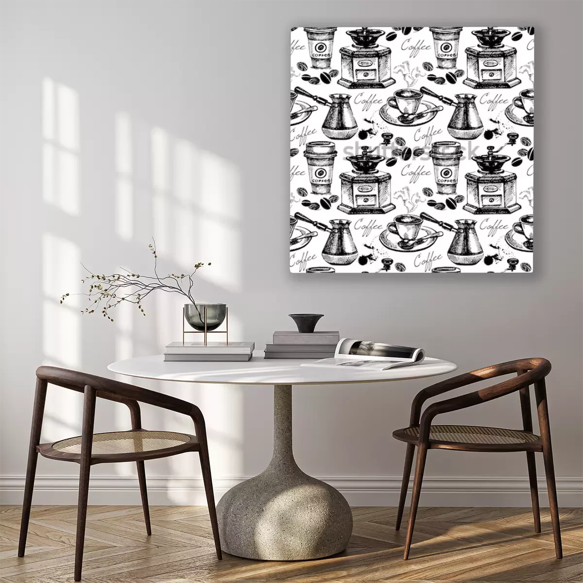 Tableau  Modèle sans couture de cafe vintage. Illustration vectorielle dessinés à la main