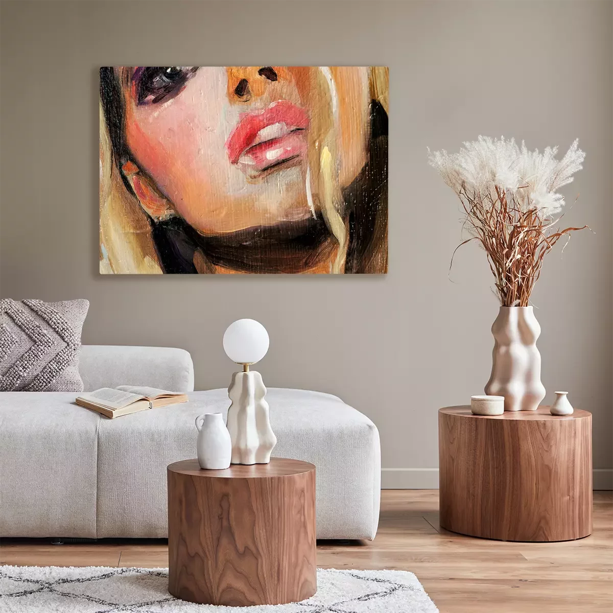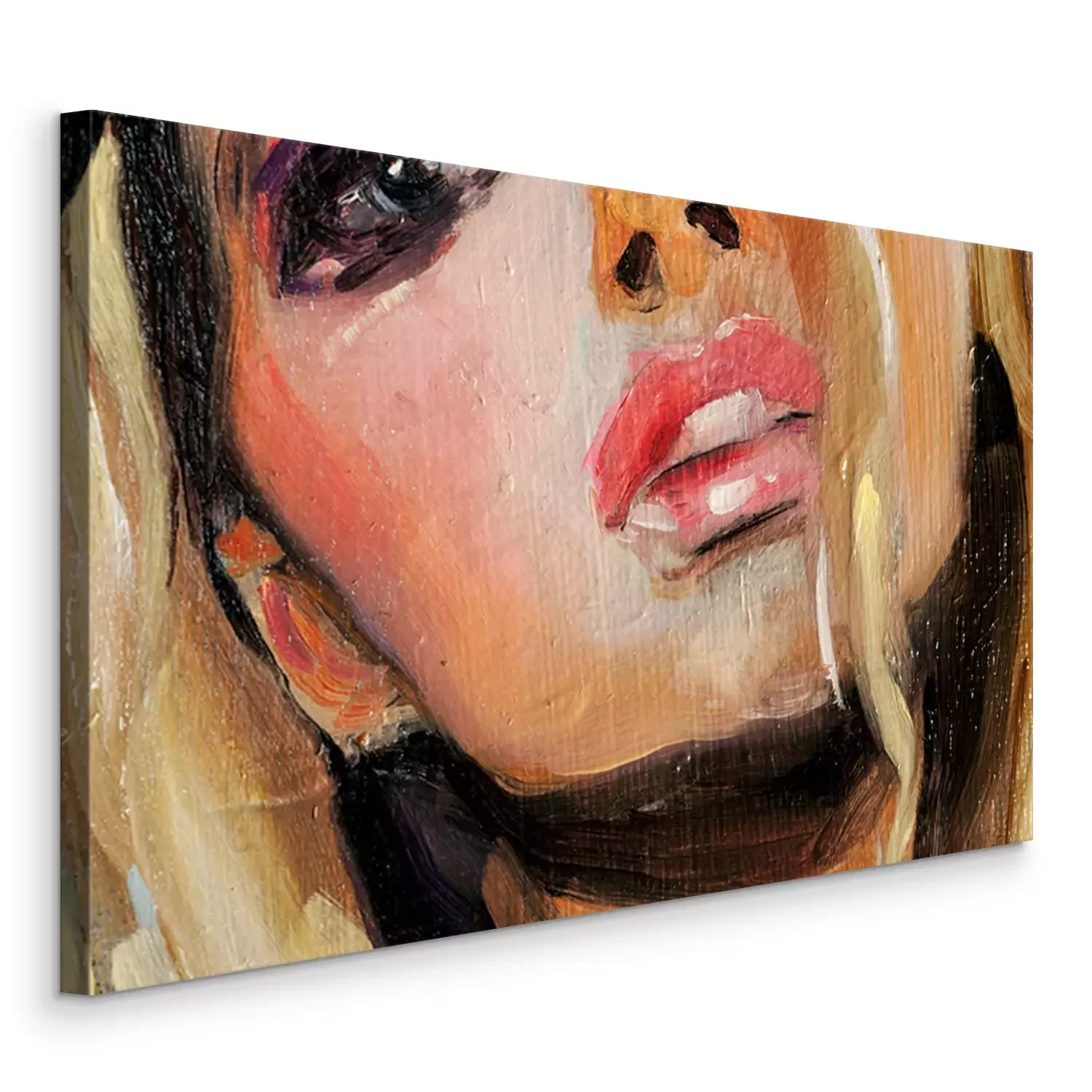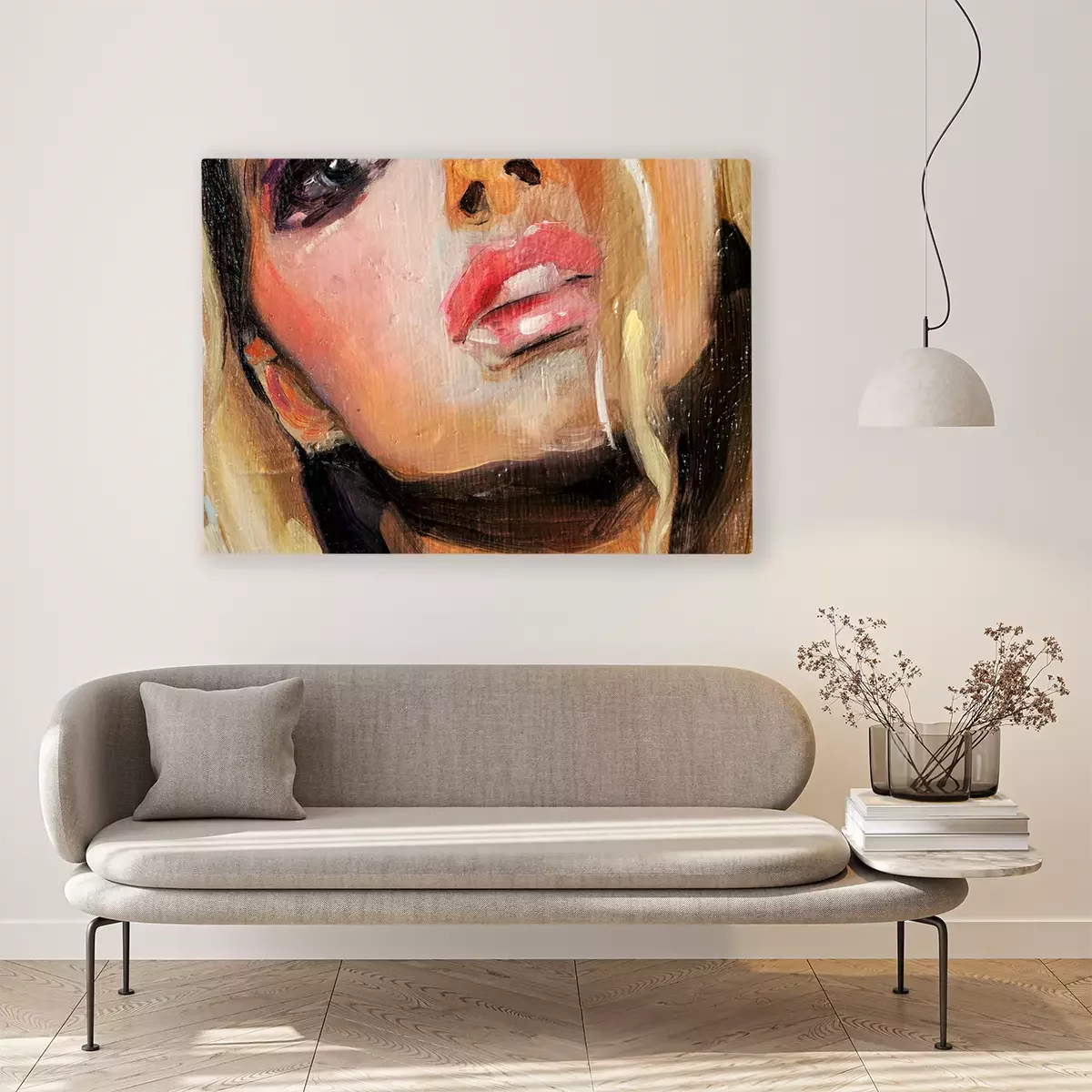 Tableau  Modern art, beautiful caucasian woman with blue eyes and blonde hair, oil painting