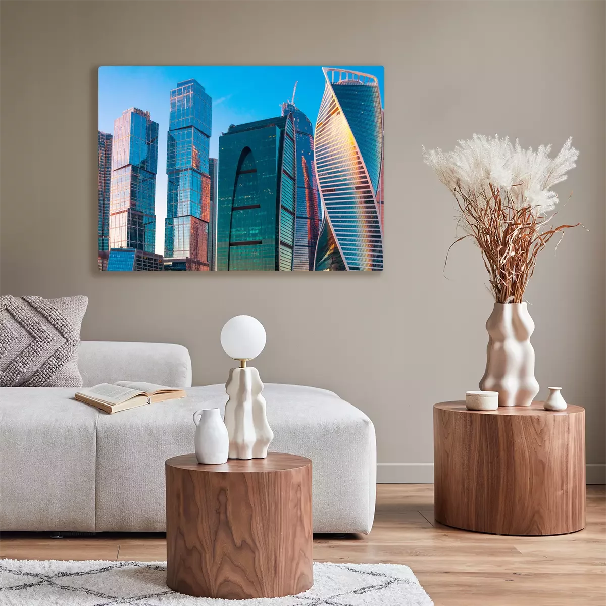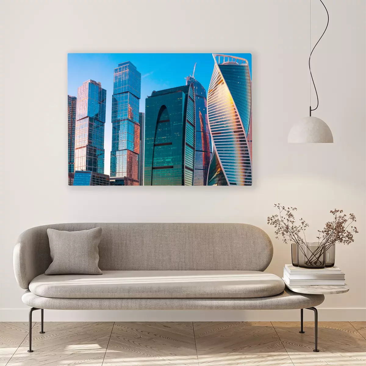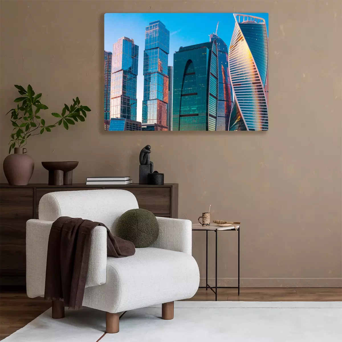 Tableau  Moderne, gratte-ciel, affaires, centre, moscou, coucher soleil