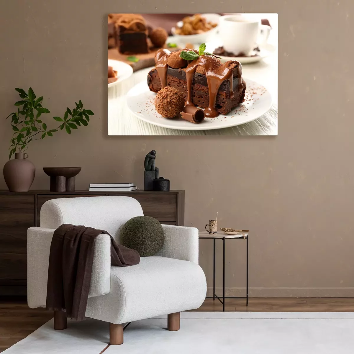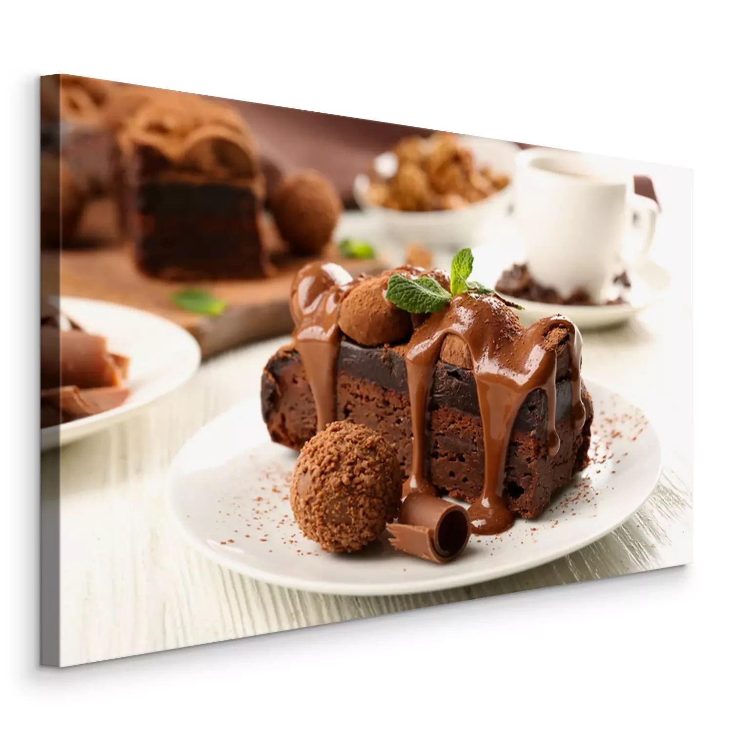 Tableau  Morceau, chocolat, gâteau, menthe, table, gros plan