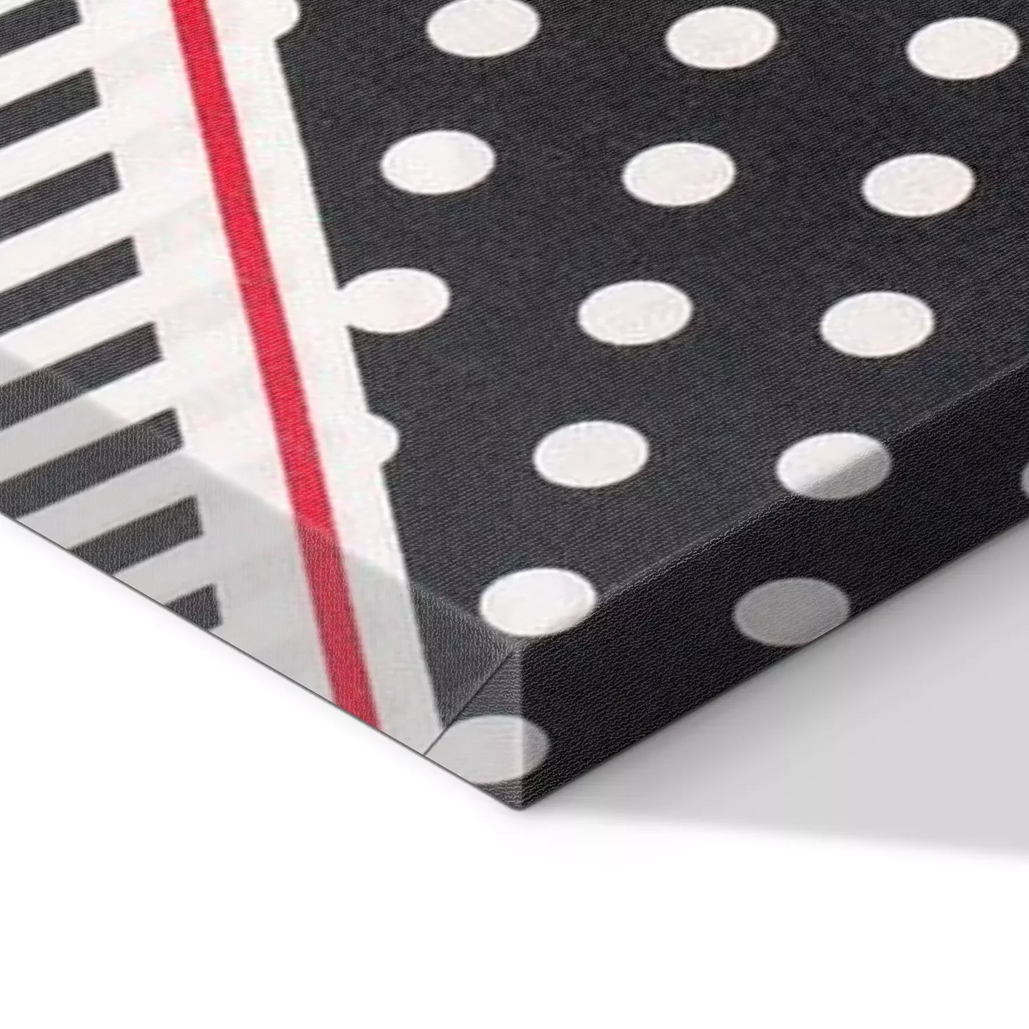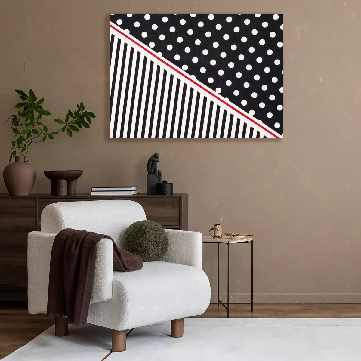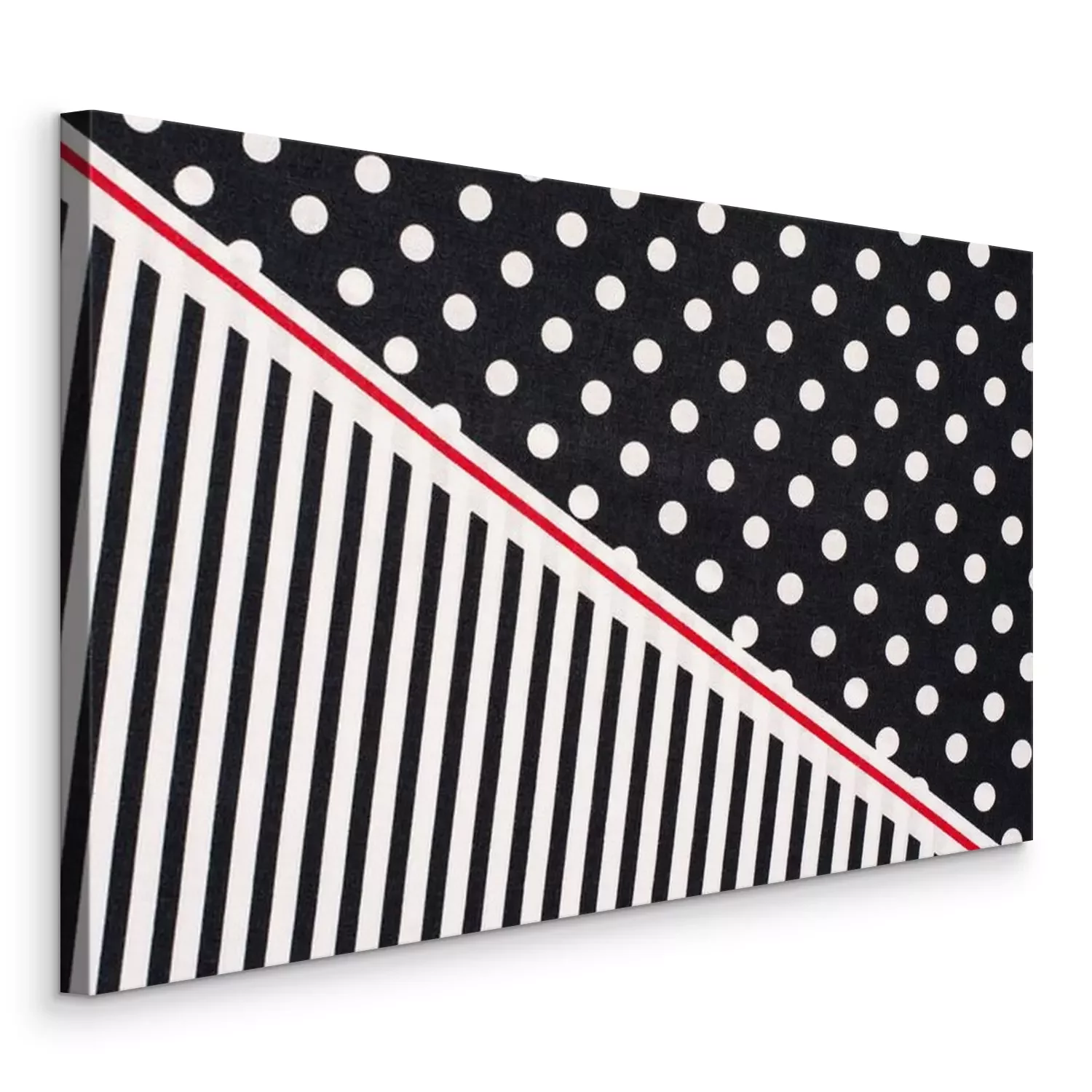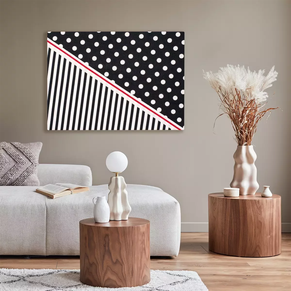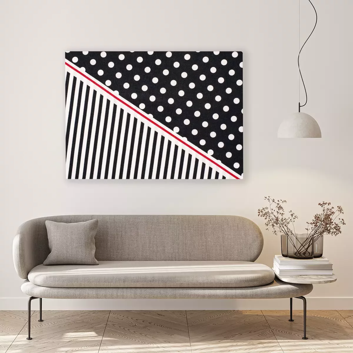 Tableau  Motif à pois et rayures. Les demi-points blancs et les demi-rayures verticales impriment sur le bleu foncé comme fond.
