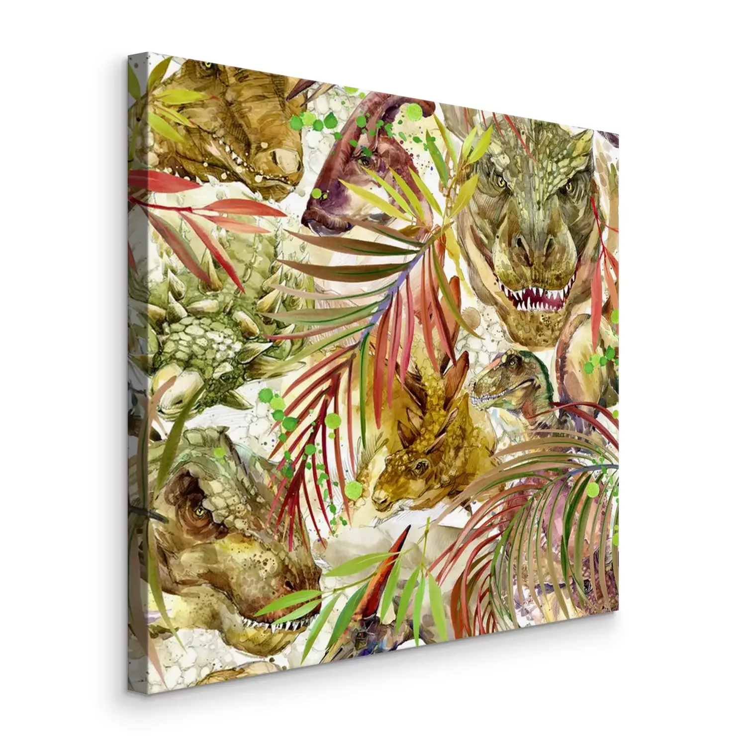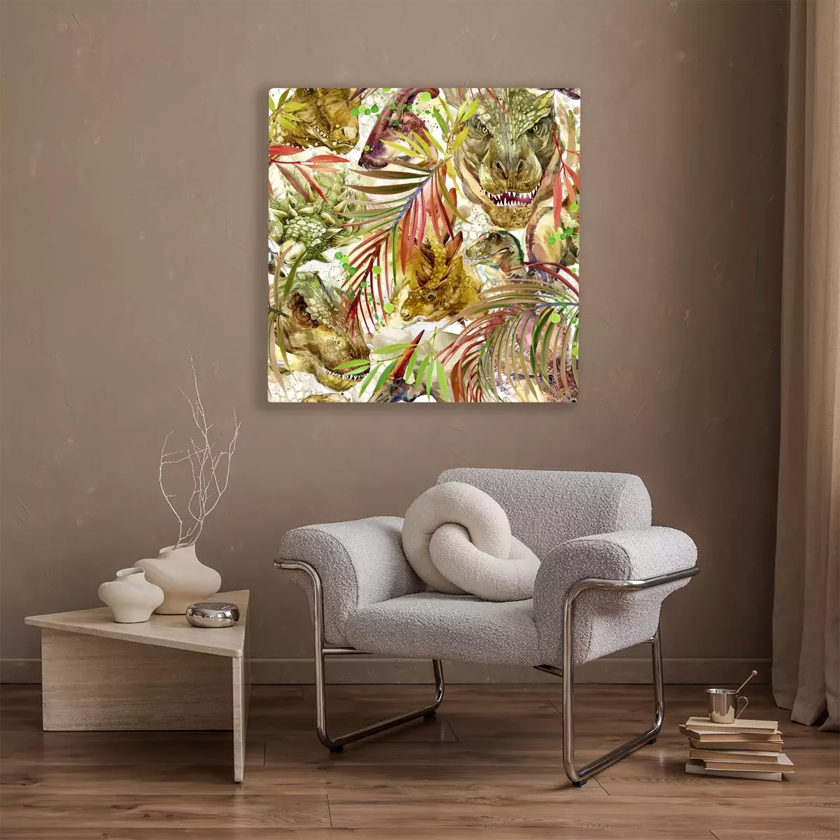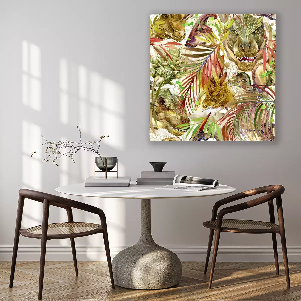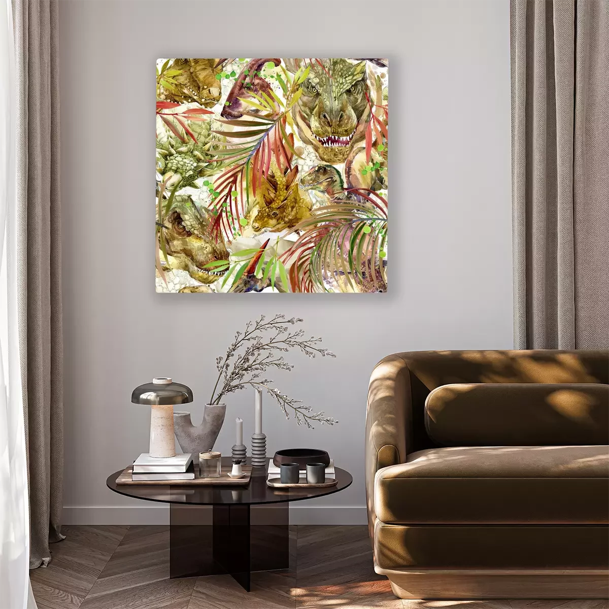 Tableau  Motif abstrait avec des dinosaures au milieu de feuilles