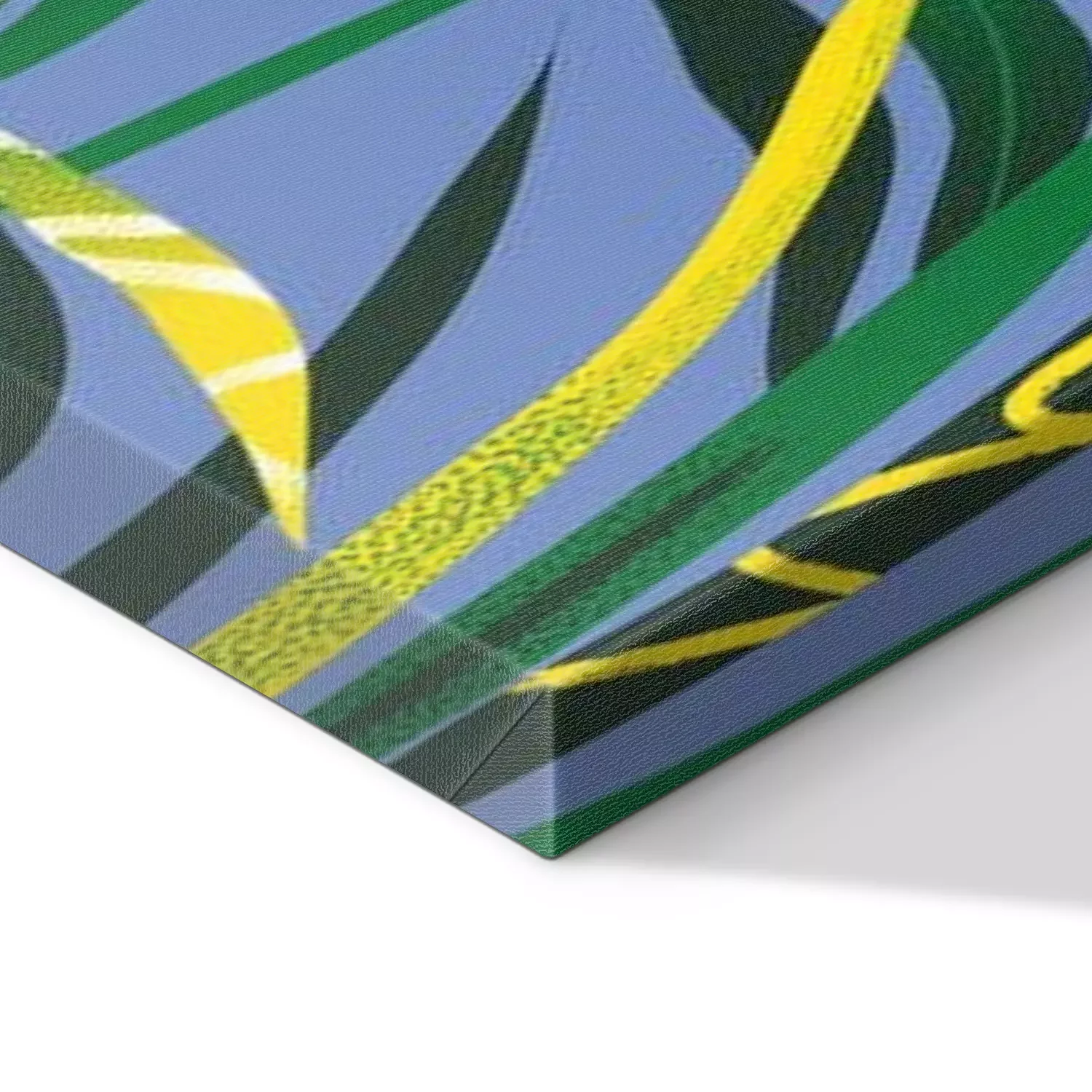 Tableau : Motif abstrait coloré avec des feuilles tropicales