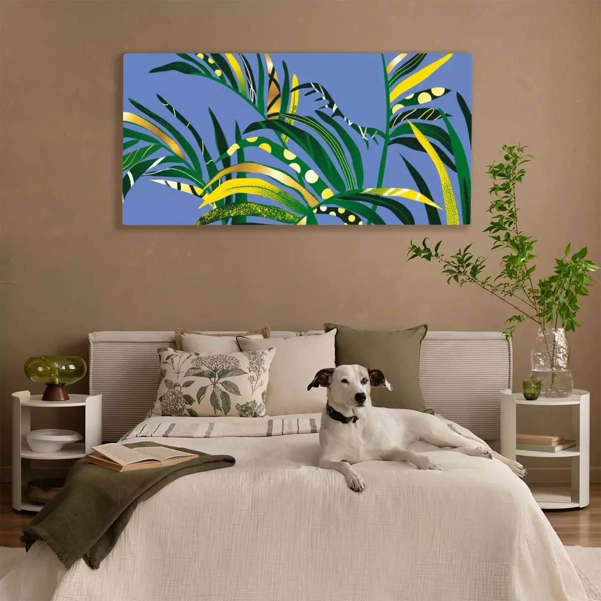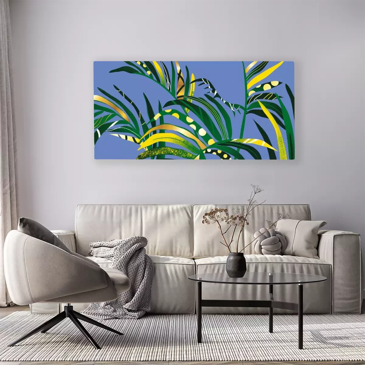 Tableau  Motif abstrait coloré avec des feuilles tropicales