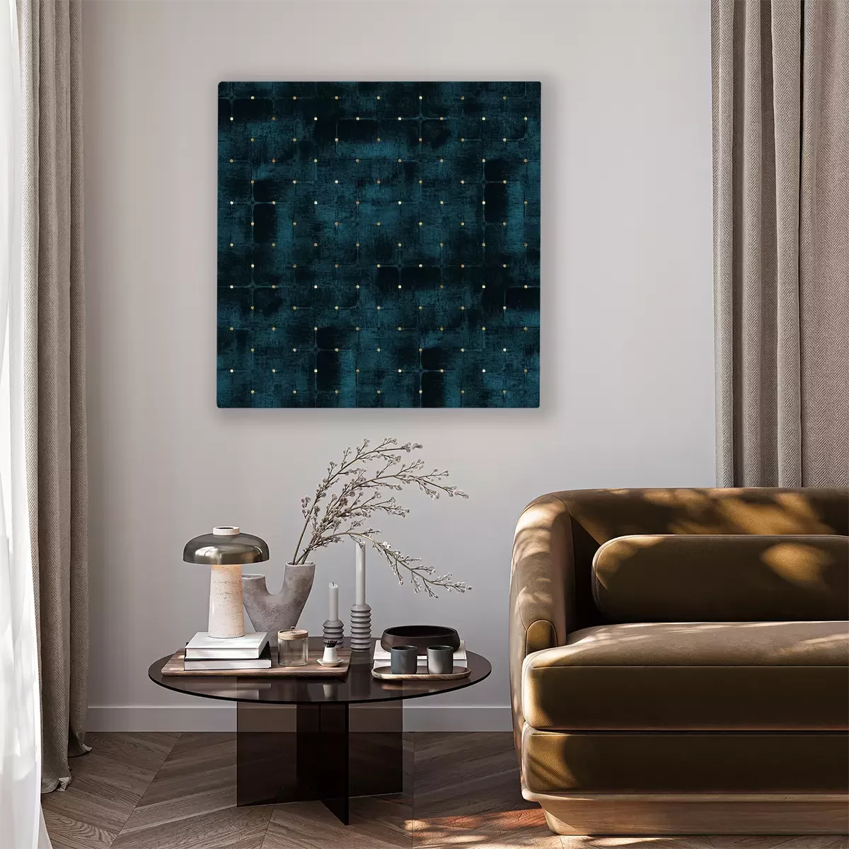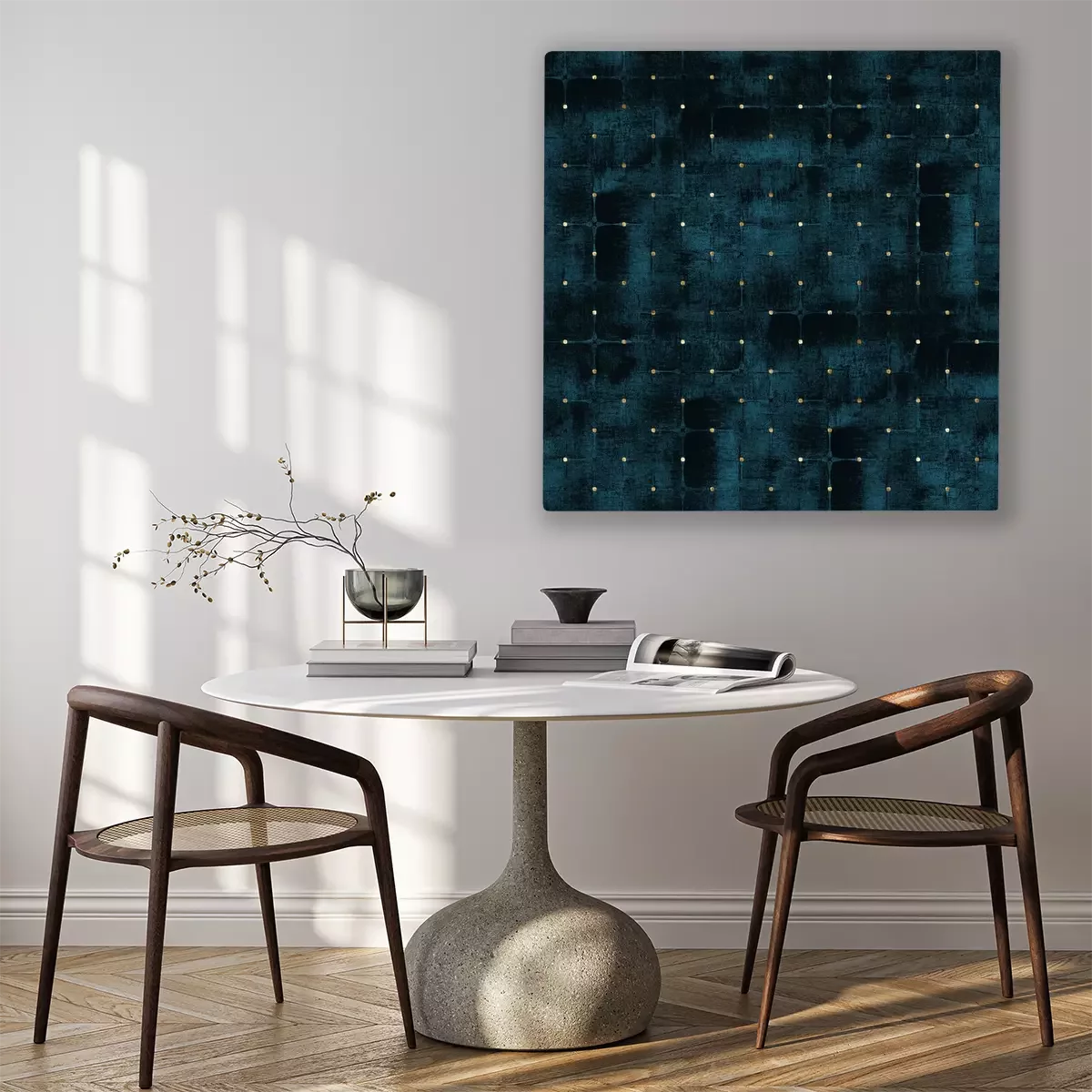 Tableau : Motif bleu marine imitant le velours