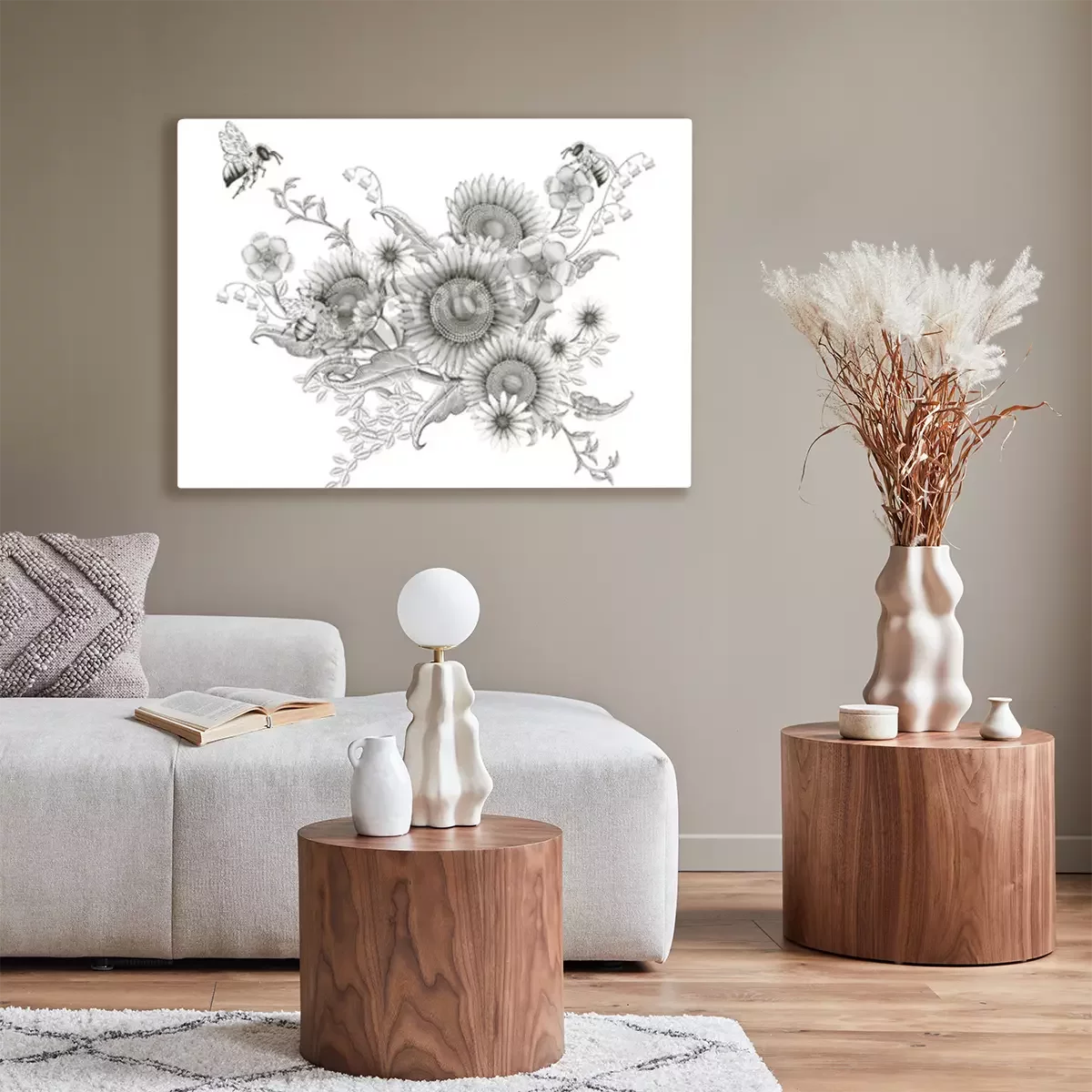 Tableau : Motif botanique avec des abeilles