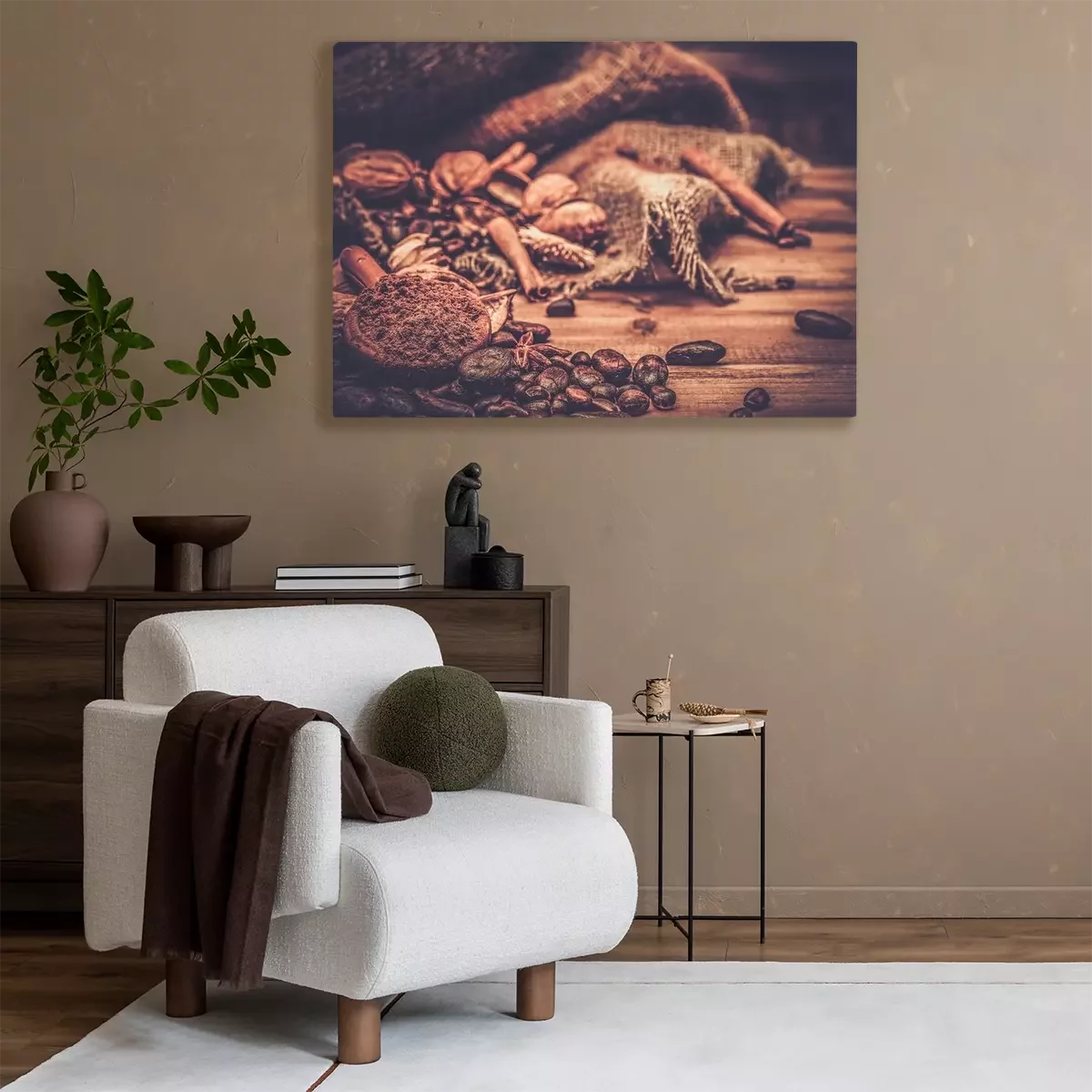 Tableau : Motif café sur une table en bois