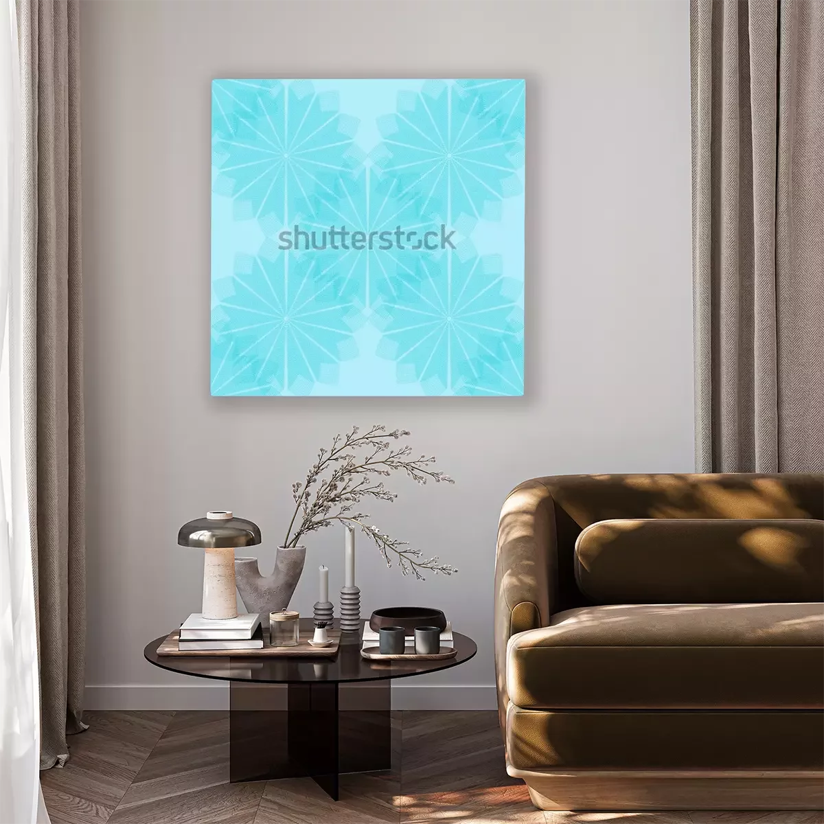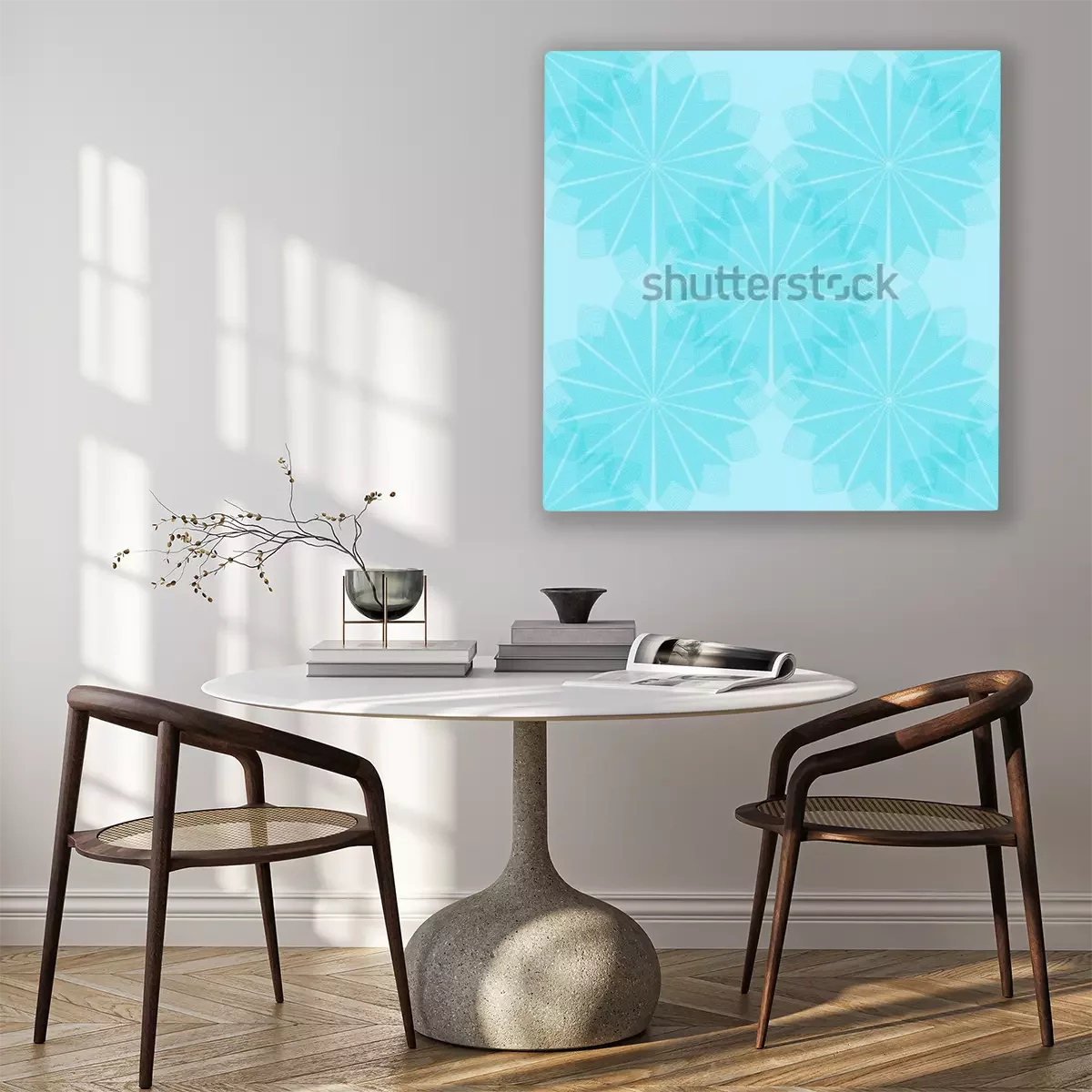 Tableau  Motif de fleurs cyan. Vectorielle continue