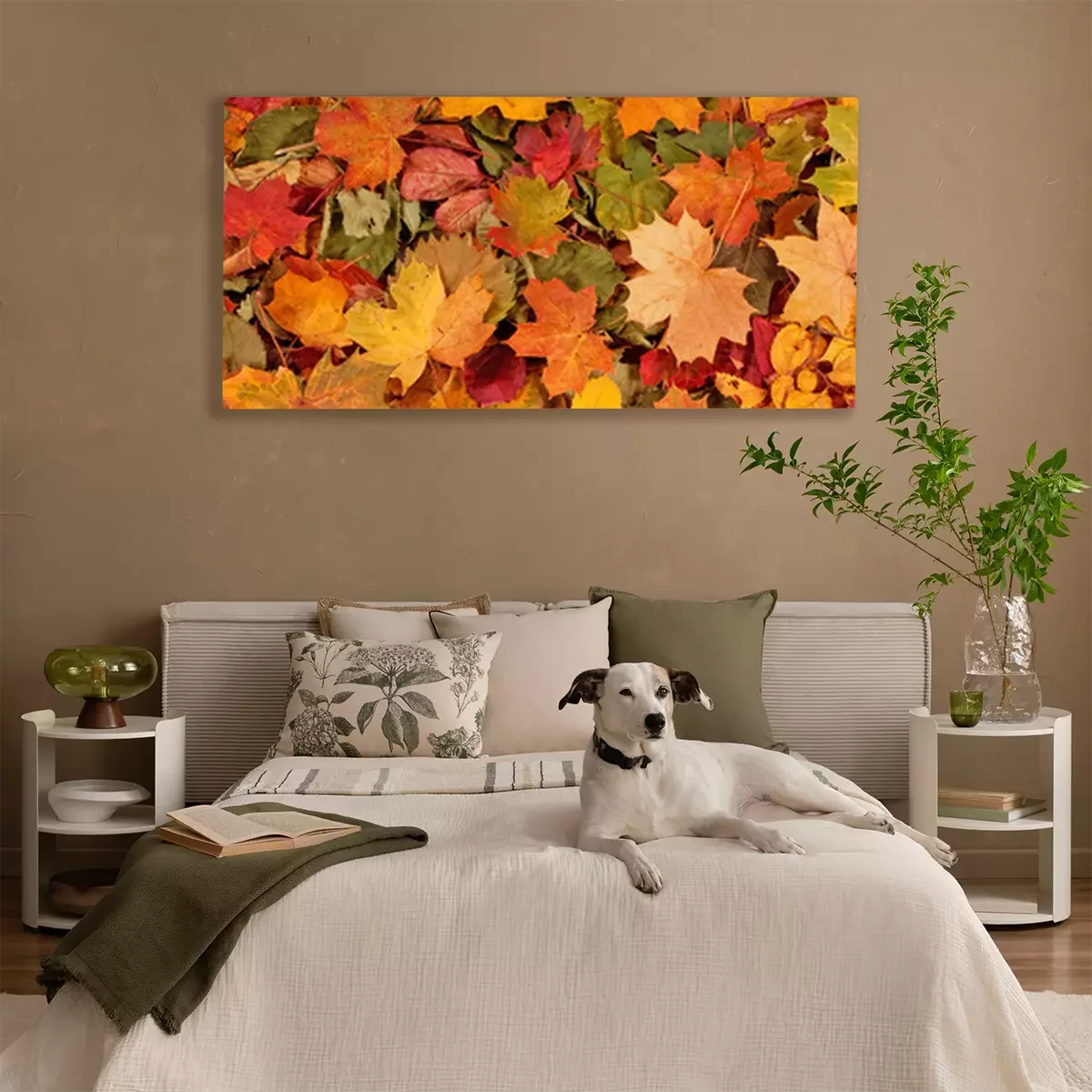 Tableau : Motif de fond automne saisonnier coloré, tapis vibrant de forêt tombée laisse.