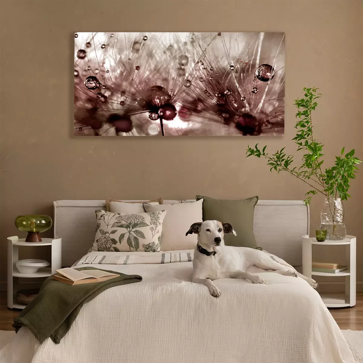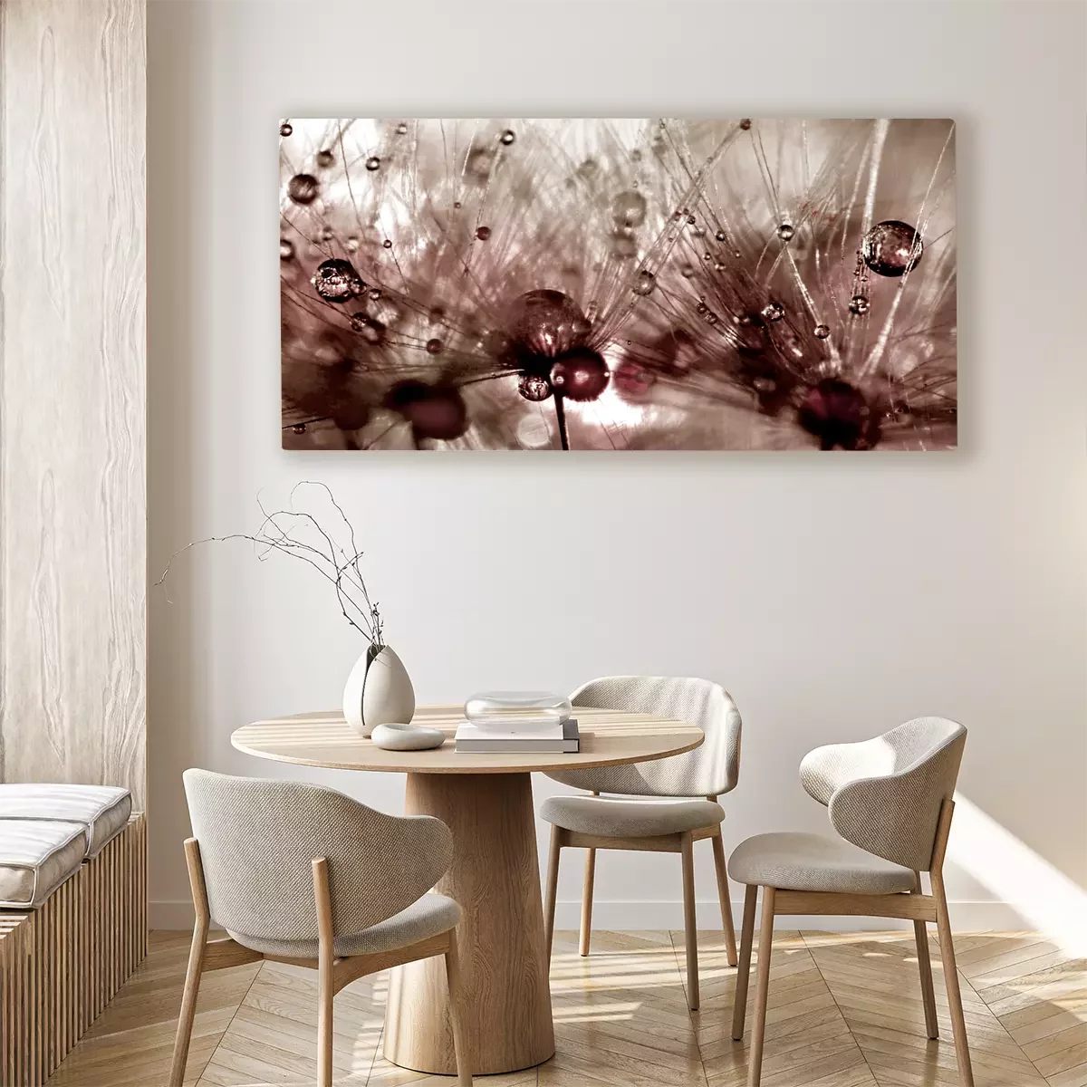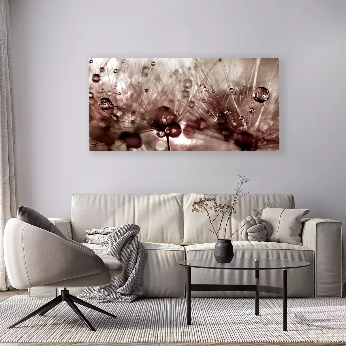 Motif de pissenlit avec des gouttes brillantes dans des tons bruns