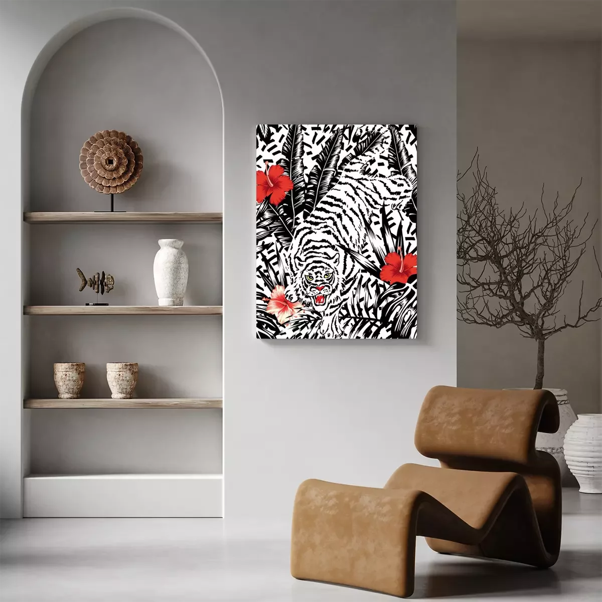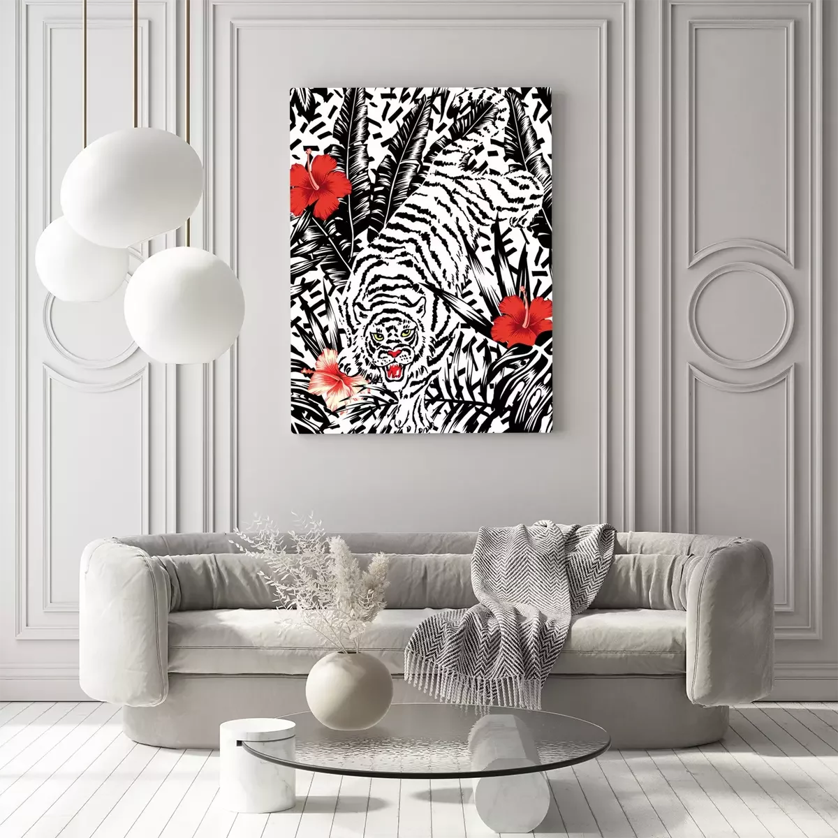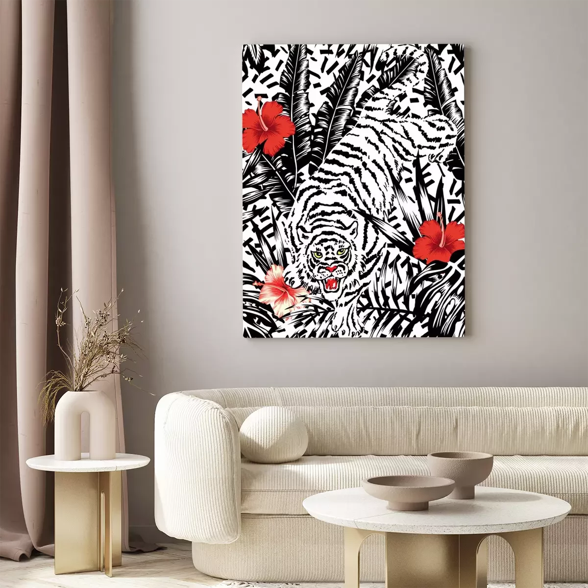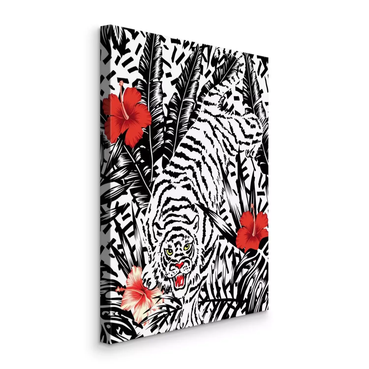 Tableau : Motif de tigre avec des fleurs