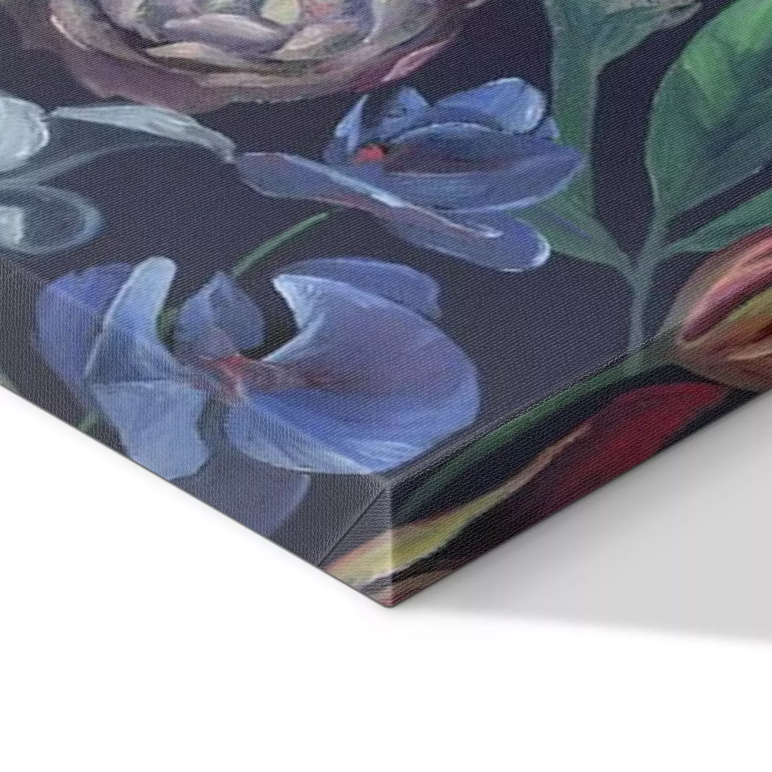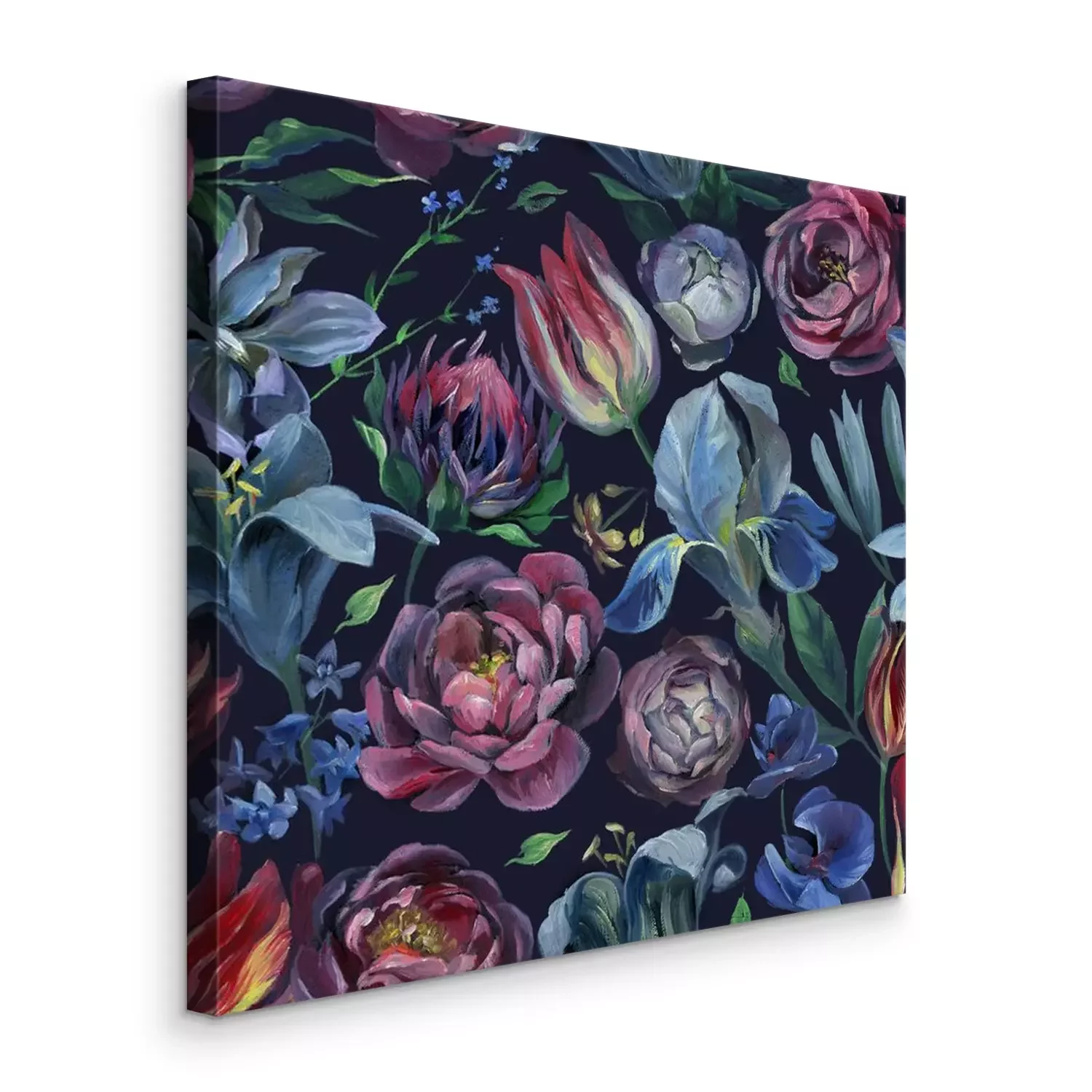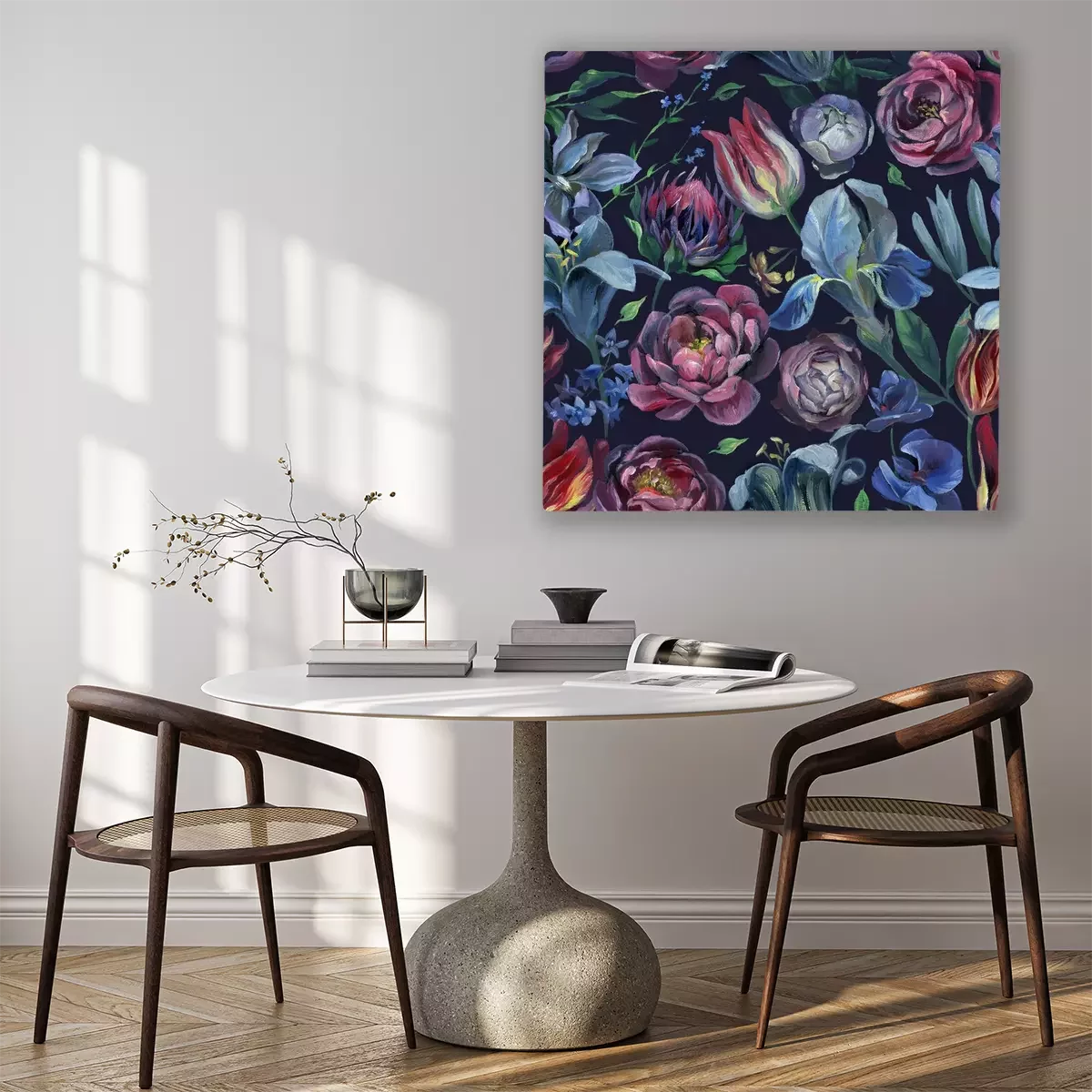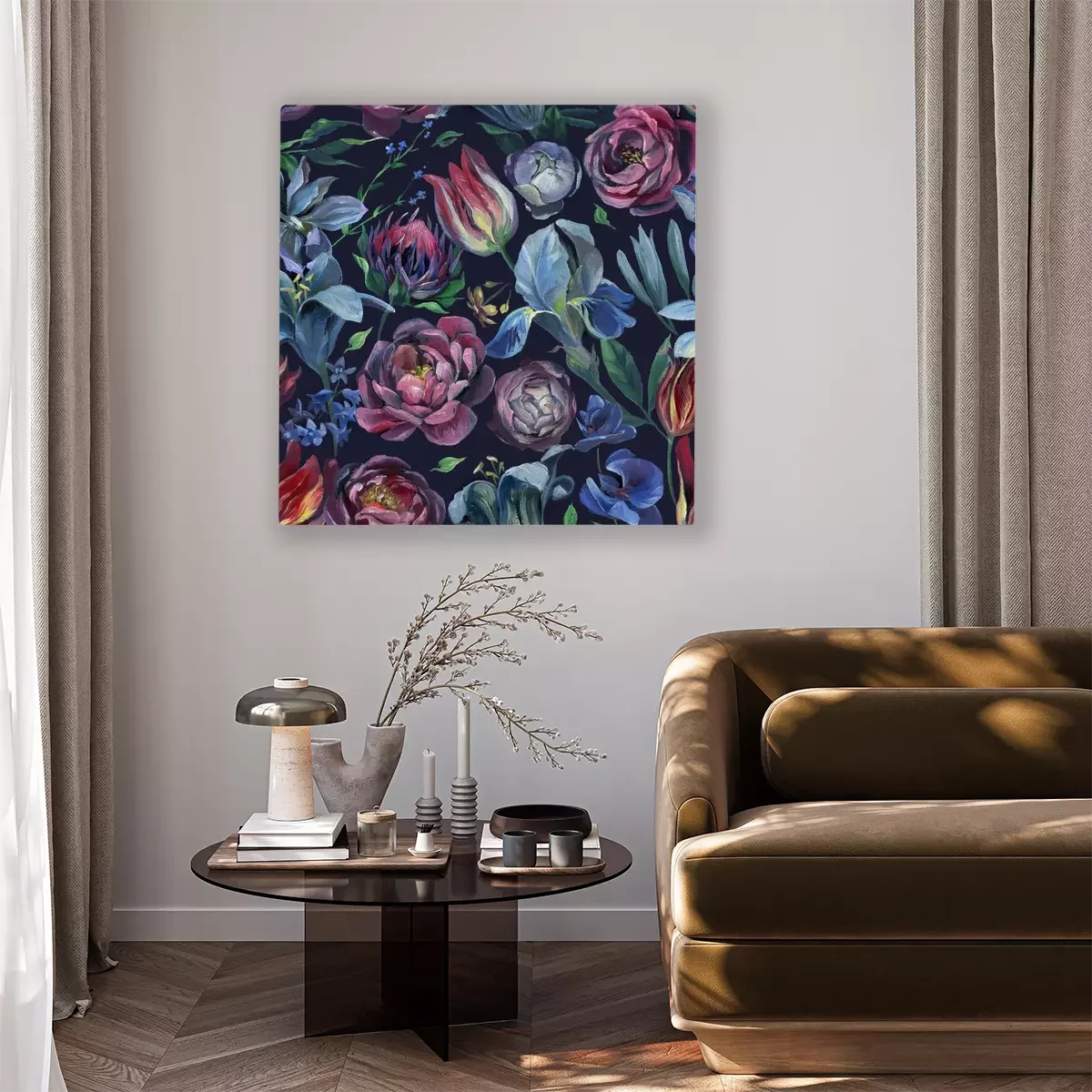 Tableau  Motif feuilles et fleurs sur un fond noir