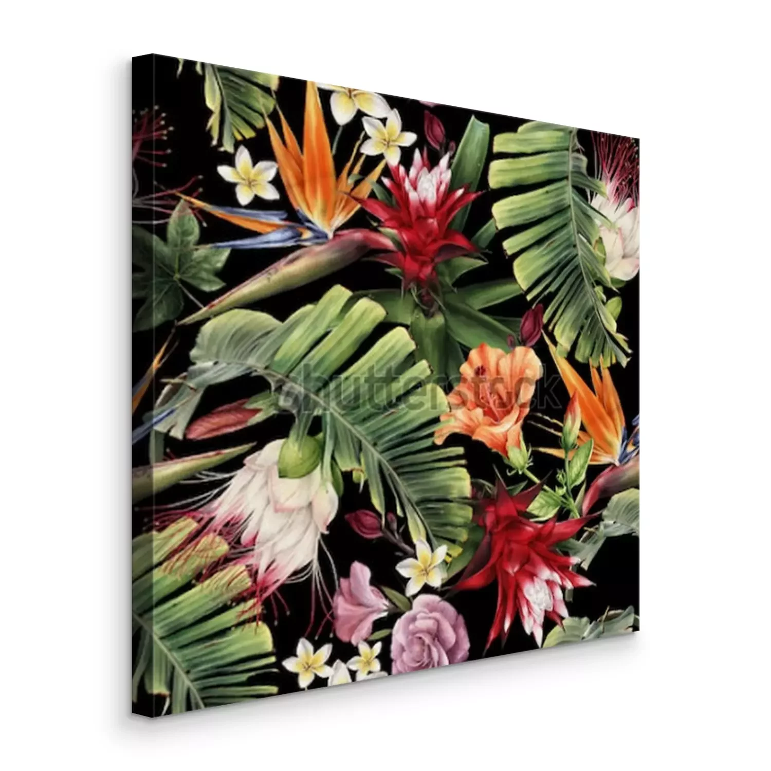 Tableau  Motif floral sans couture avec fleurs tropicales, aquarelle.