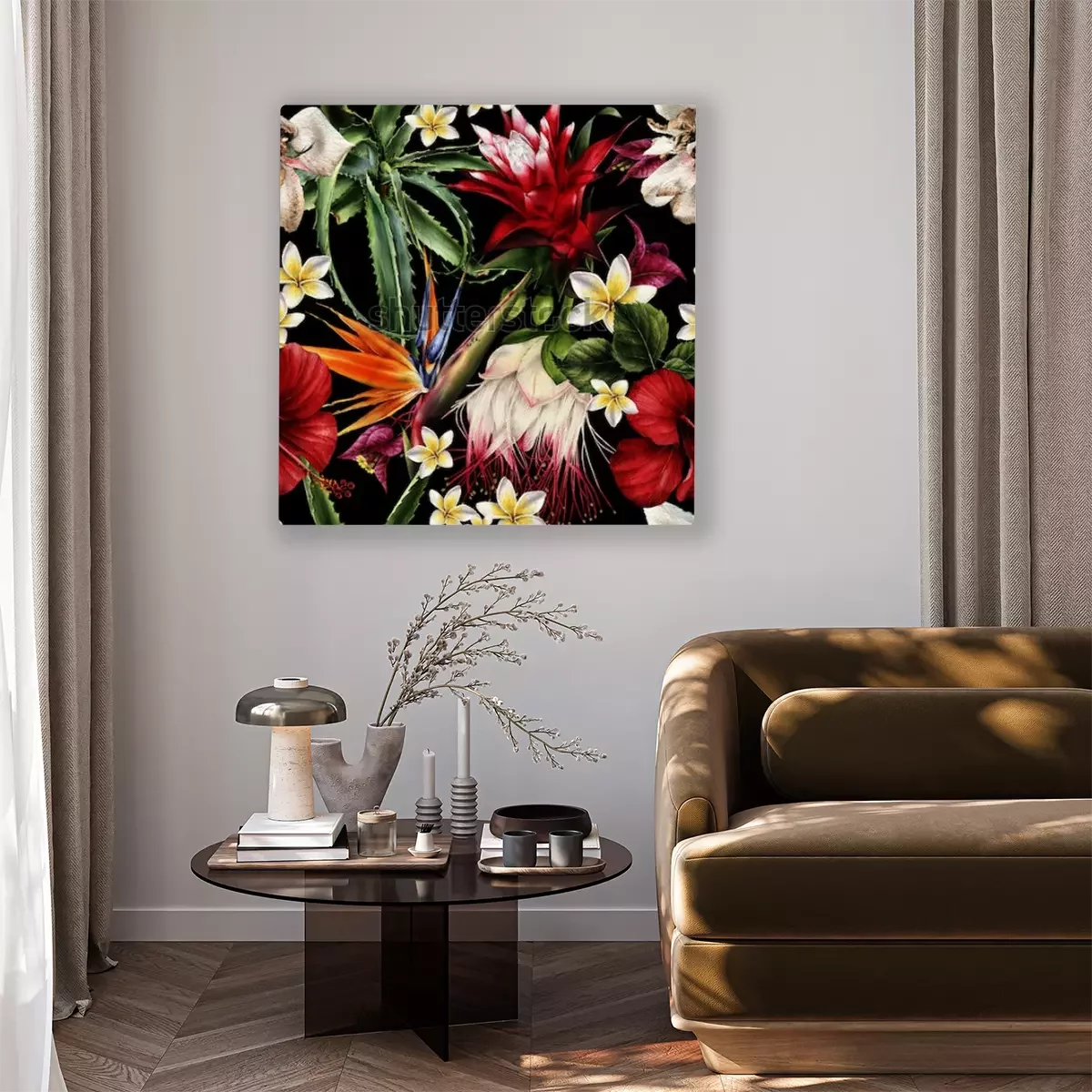 Tableau  Motif floral sans couture avec fleurs tropicales, aquarelles.