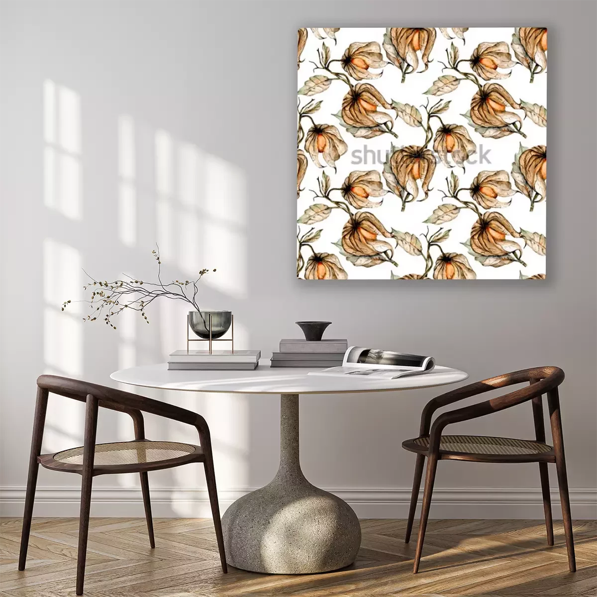 Tableau  Motif floral sans couture avec physalis fleurs séchées. Aquarelle fond blanc sans couture. Texture de papier peint en tissu. Parfait pour le papier enveloppé, le dessin de bannière