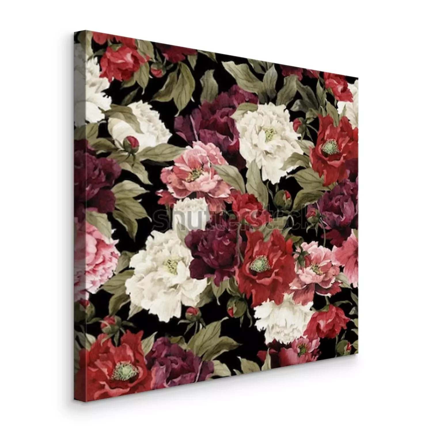 Tableau  Motif floral sans couture avec roses sur fond noir, aquarelles.