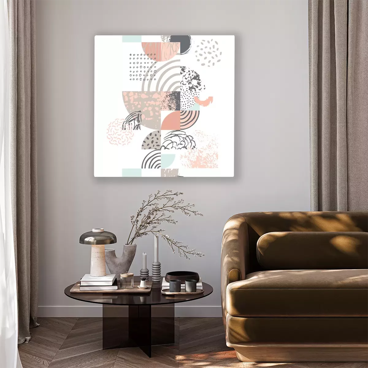Tableau  Motif géométrique sans couture moderne: demi-cercles, cercles, carrés, textures grunge, griffonnages