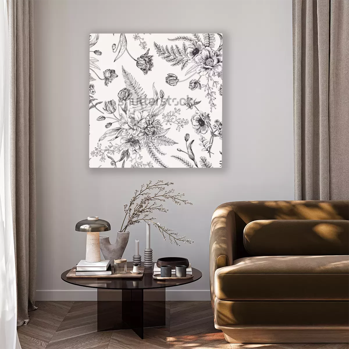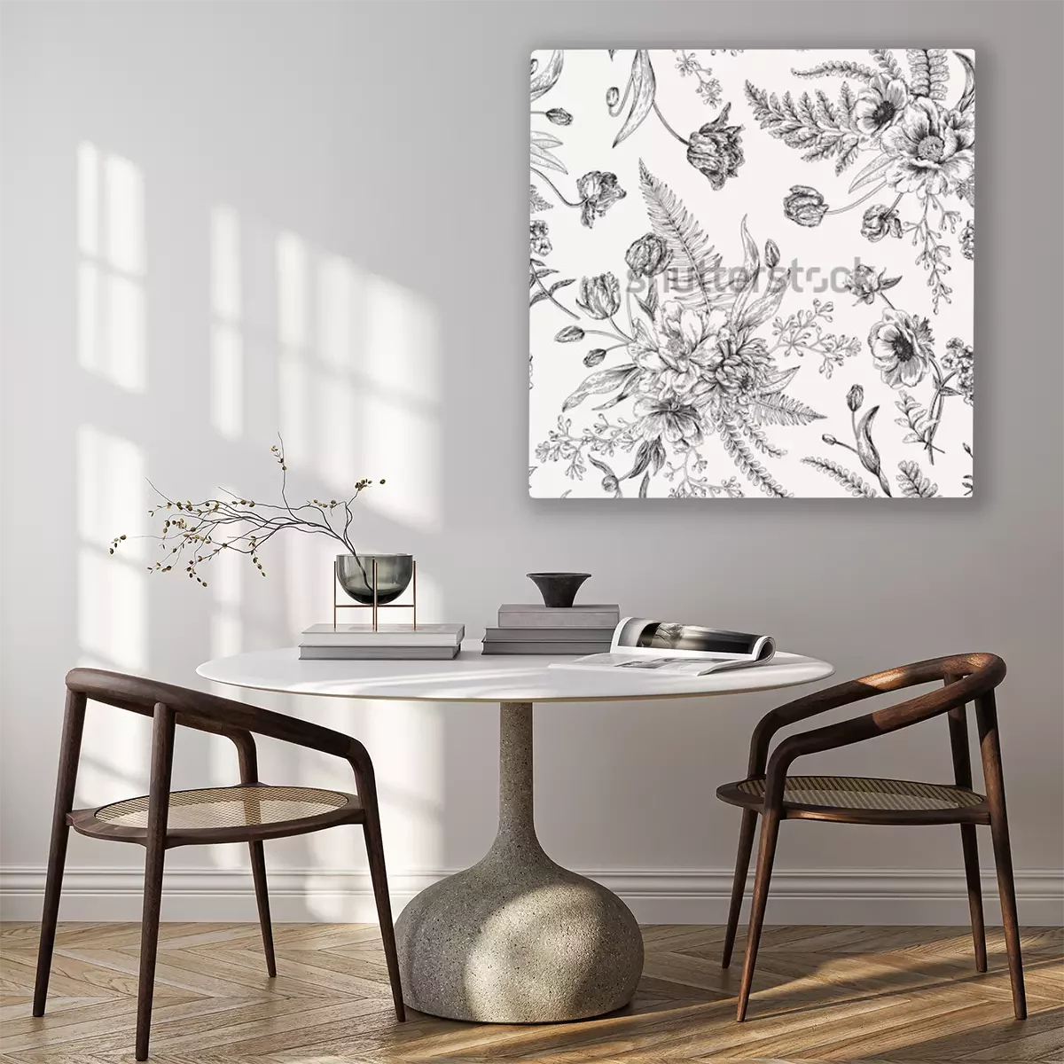 Tableau : Motif noir et blanc avec la nature