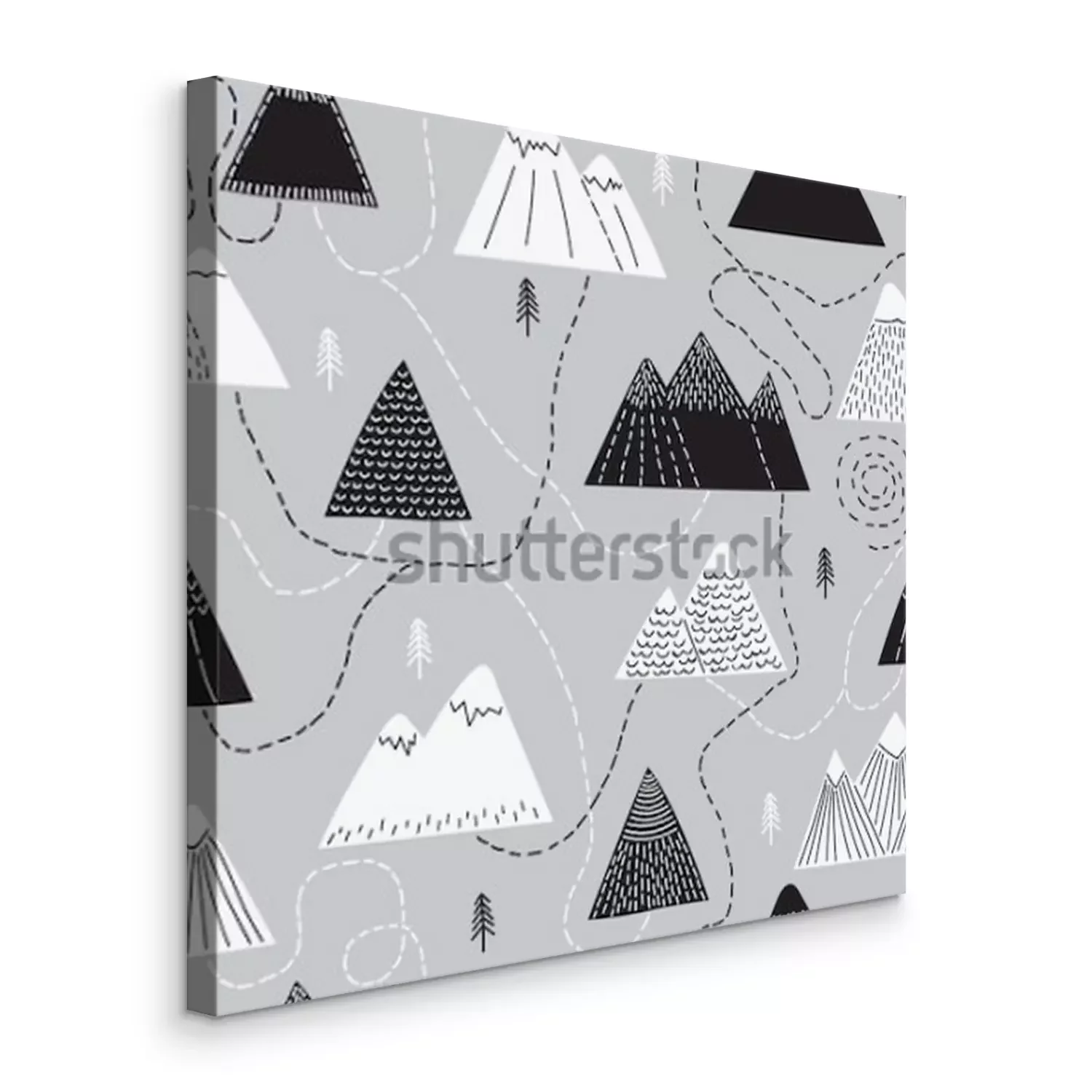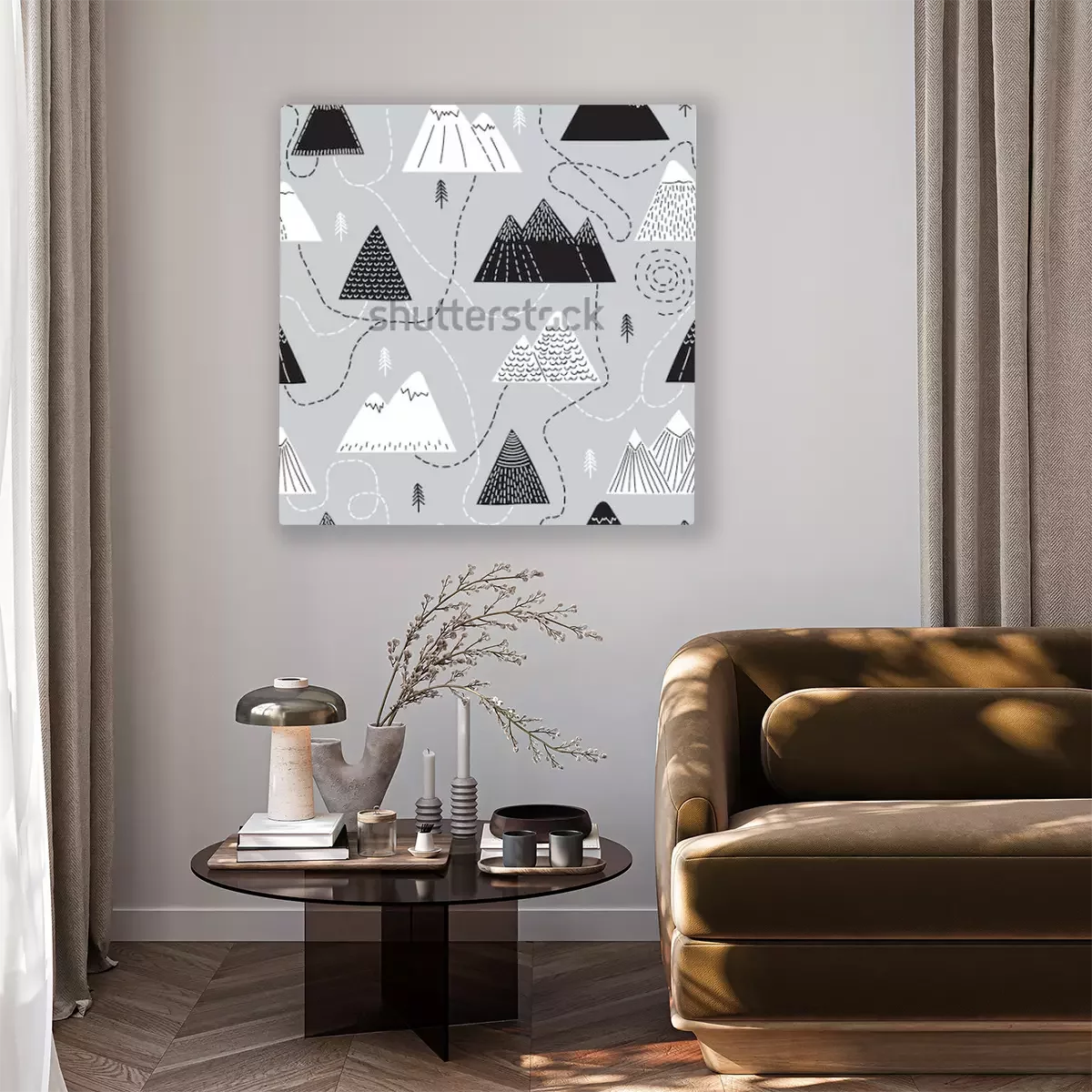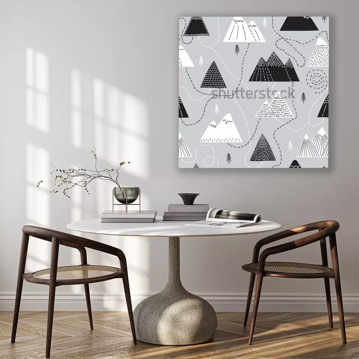 Tableau : Motif scandinave de montagnes et d'arbres de Noël en trois couleurs