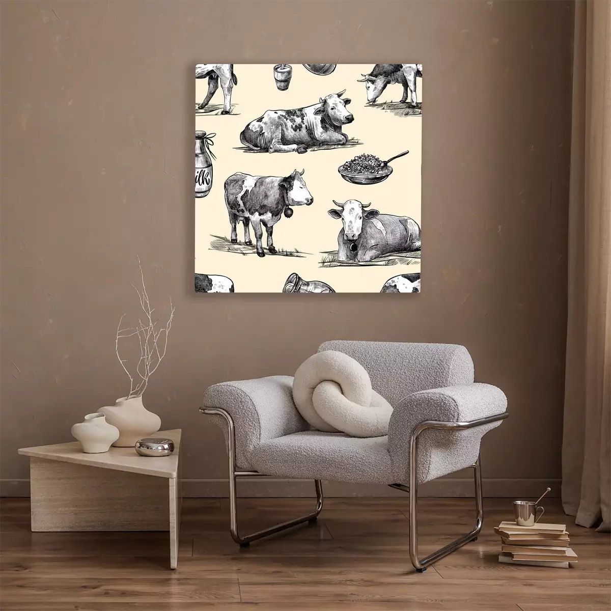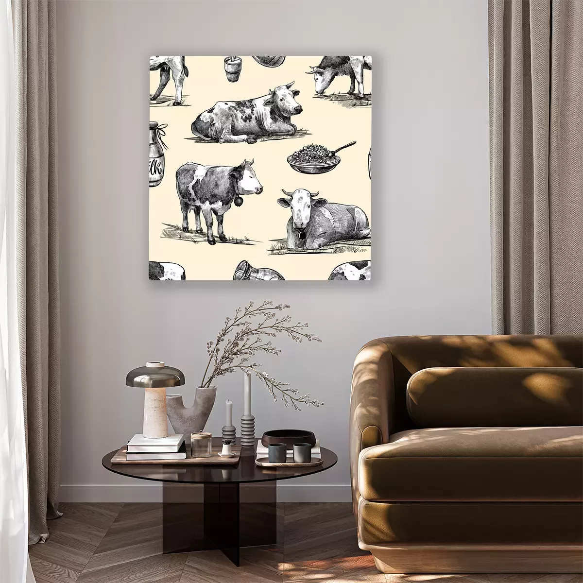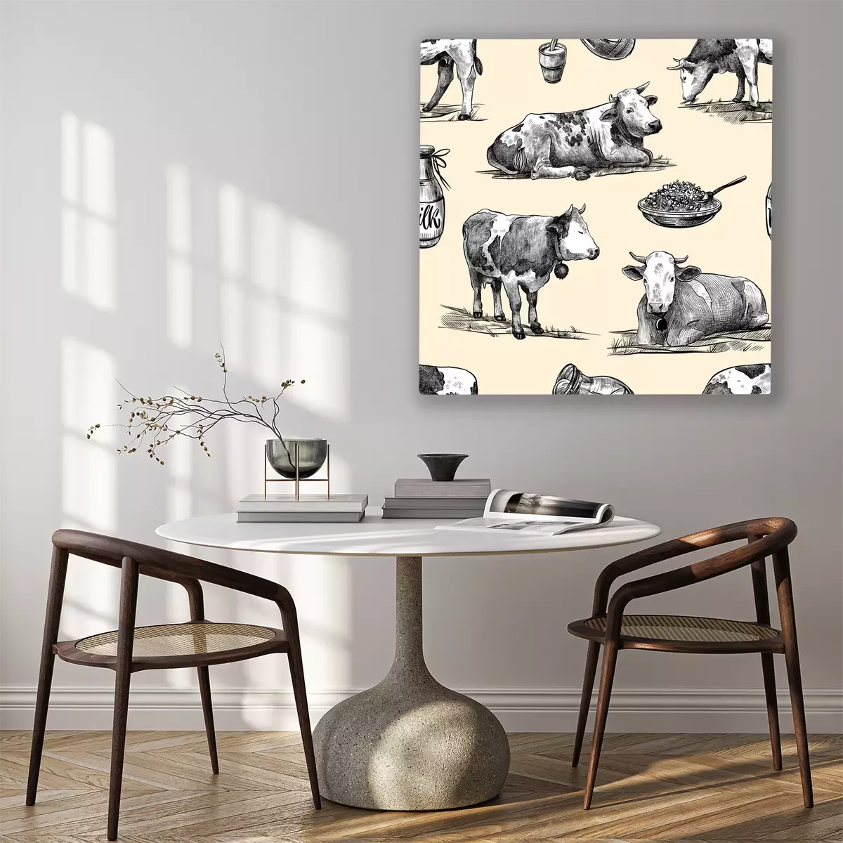 Tableau : Motif style vintage avec des vaches