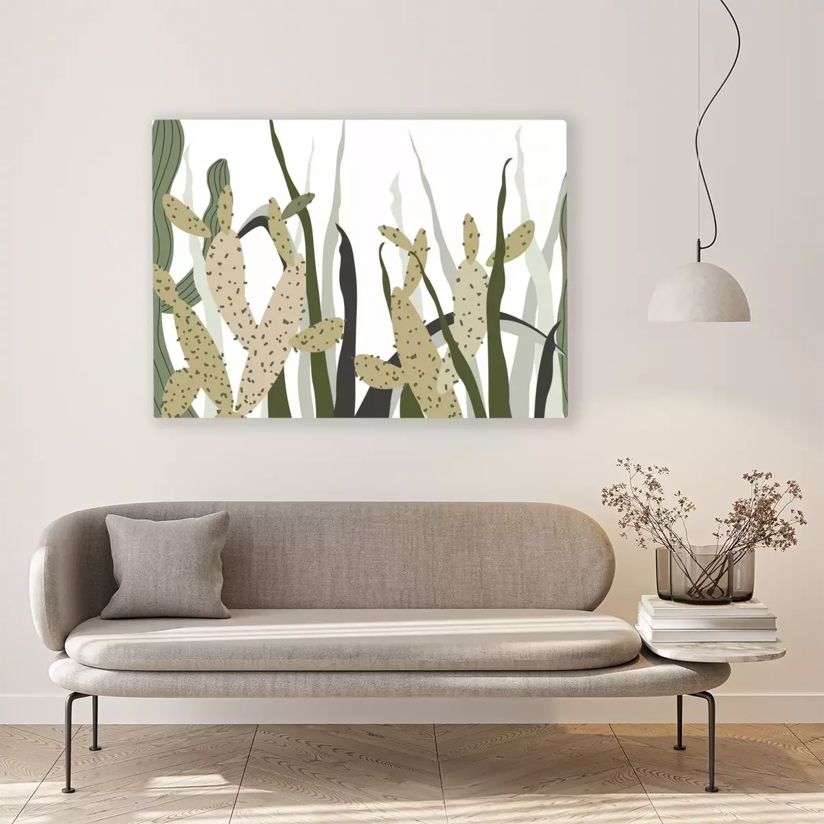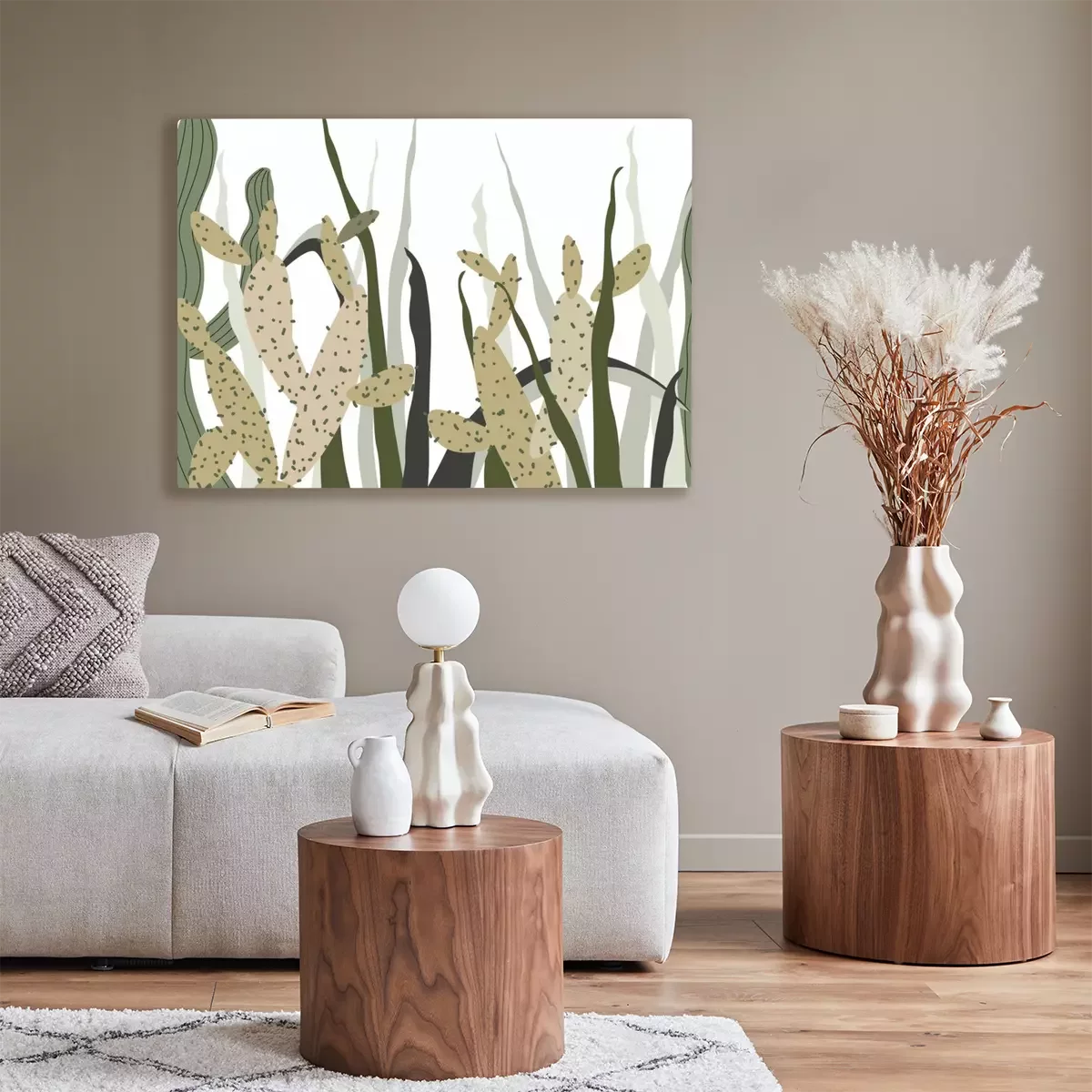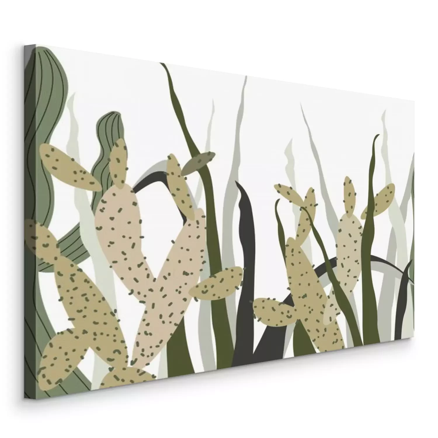Tableau : Motif tropical avec des cactus sur fond blanc