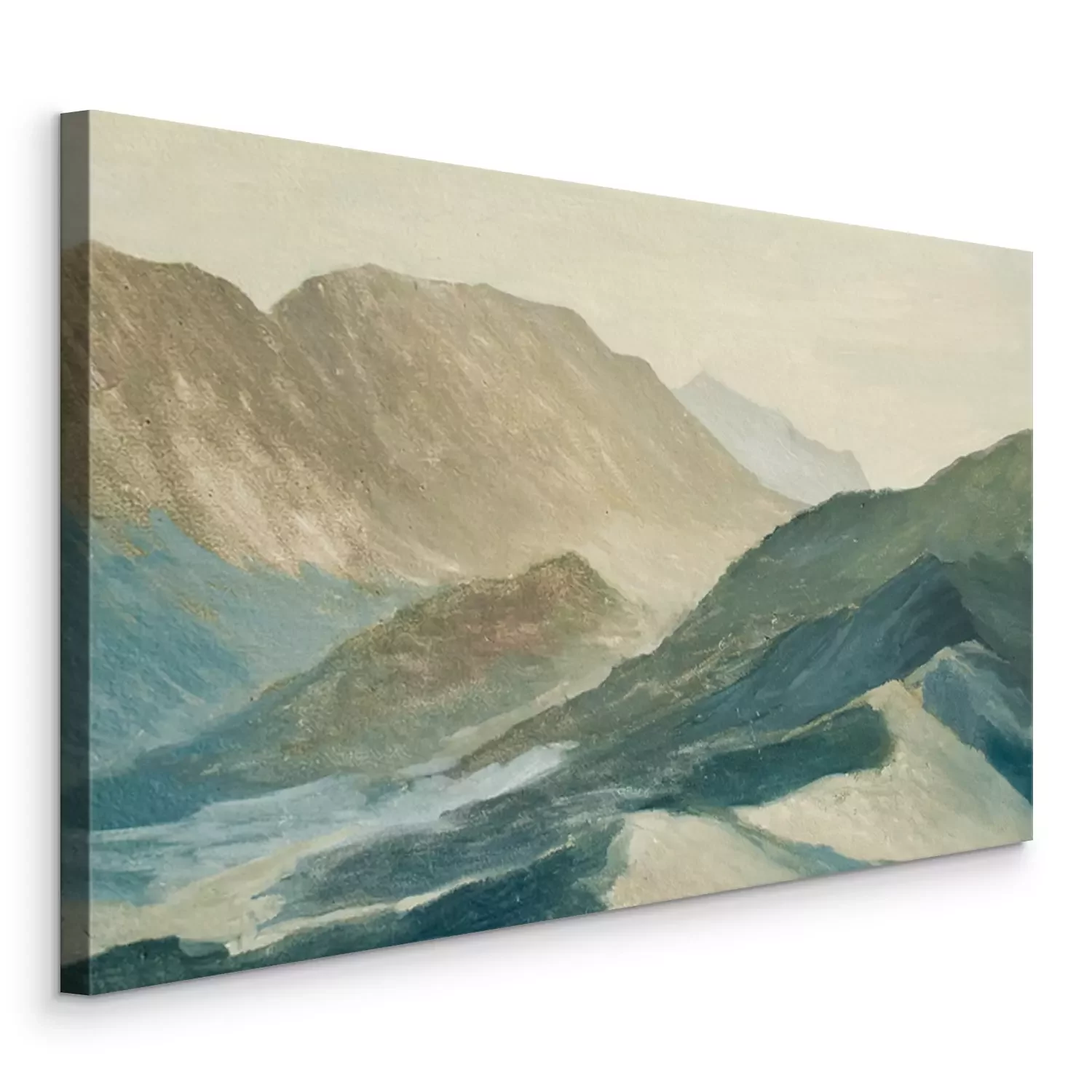 Tableau : Mountain landscape, mountains at dawn, oil painting