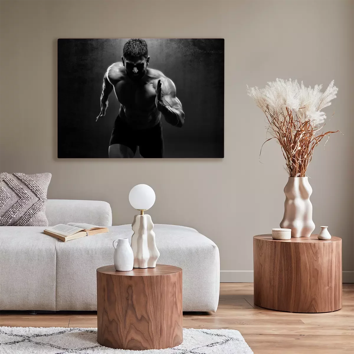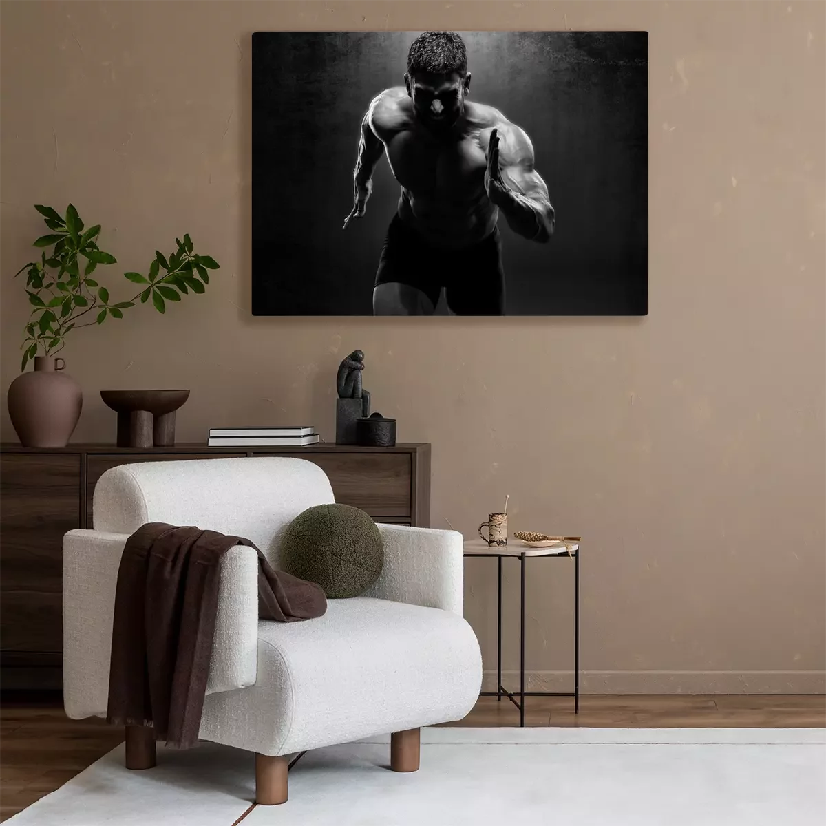 Tableau  Muscular Men in Running Motion. Handsome Male Athlete Sprinting