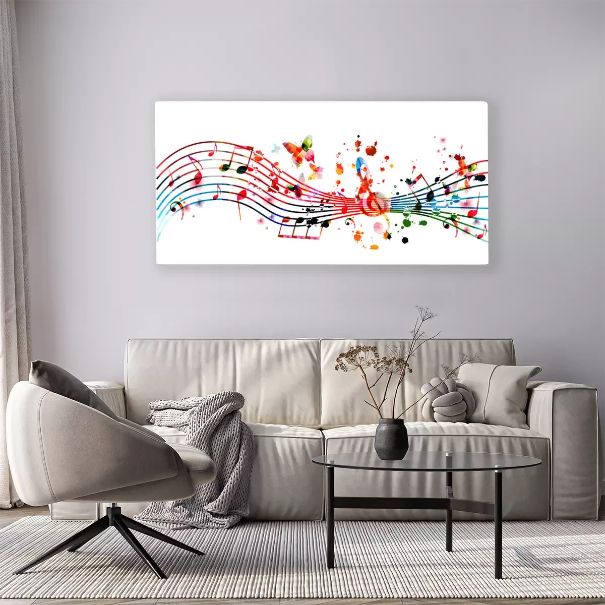 Tableau  Music background with colorful music notes vector illustration design. Artistic music festival poster, live concert events, party flyer, music notes signs and symbols