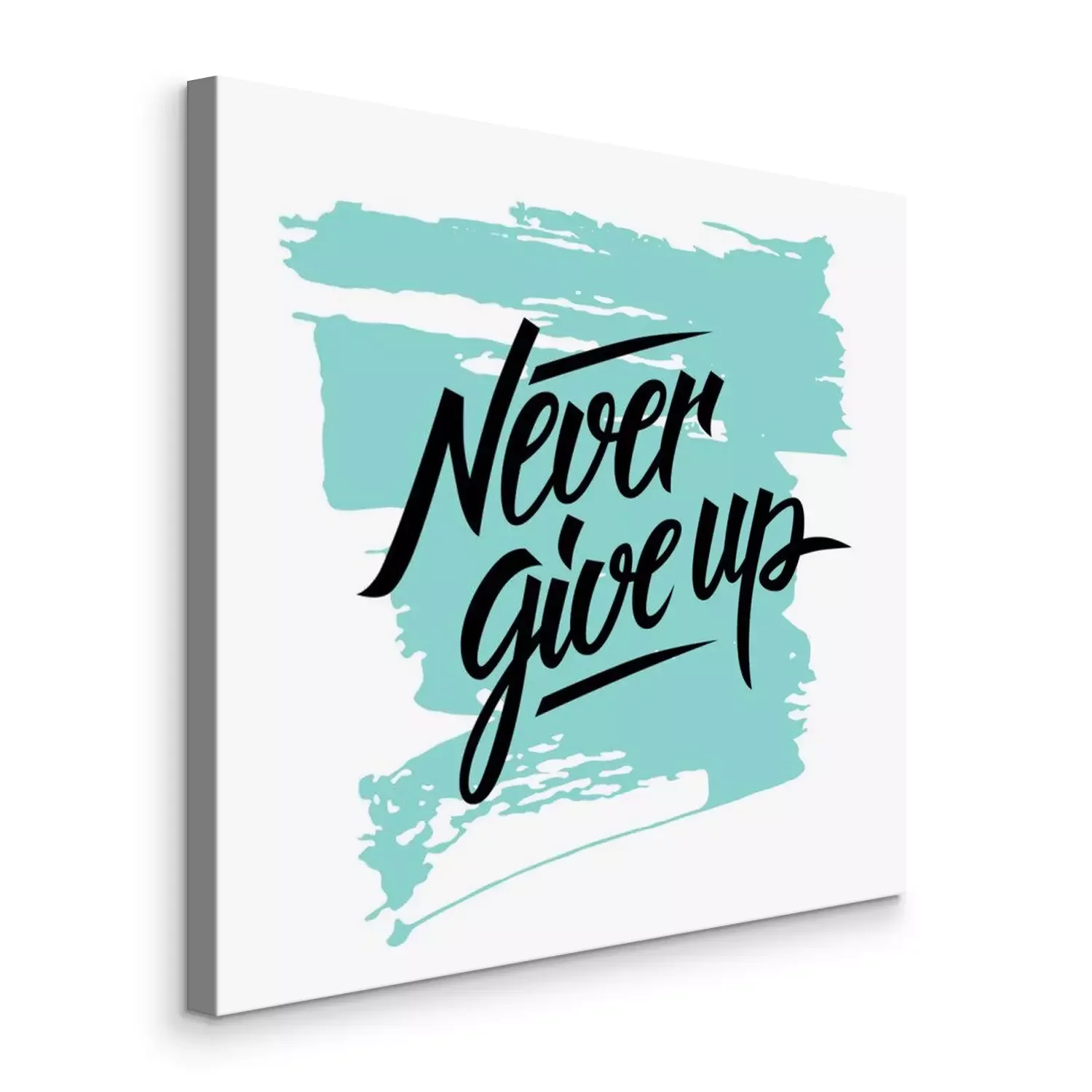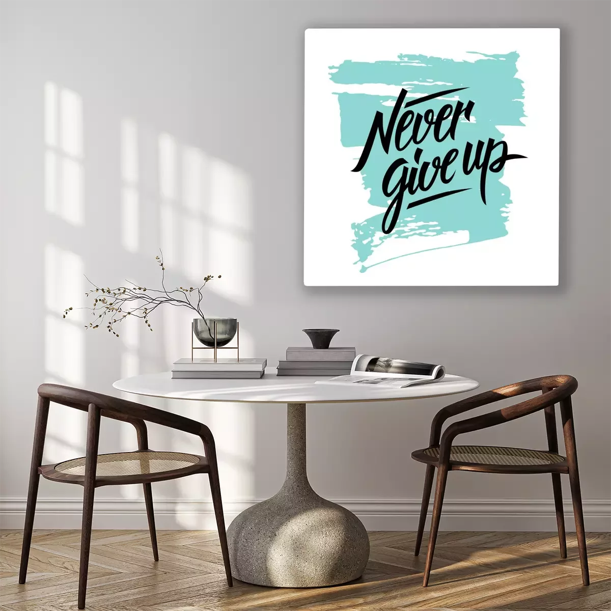 Tableau  N'abandonnez jamais la citation de motivation. Main, écrit, inscription, brosse, coup, fond Lettrage tiré à la main. Illustration vectorielle.