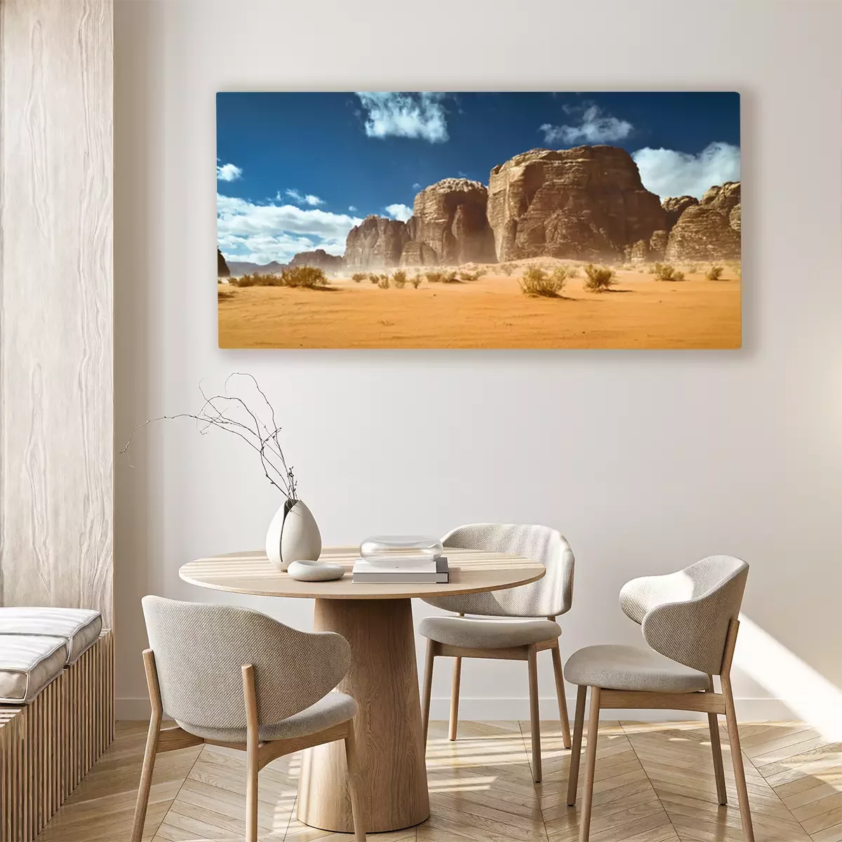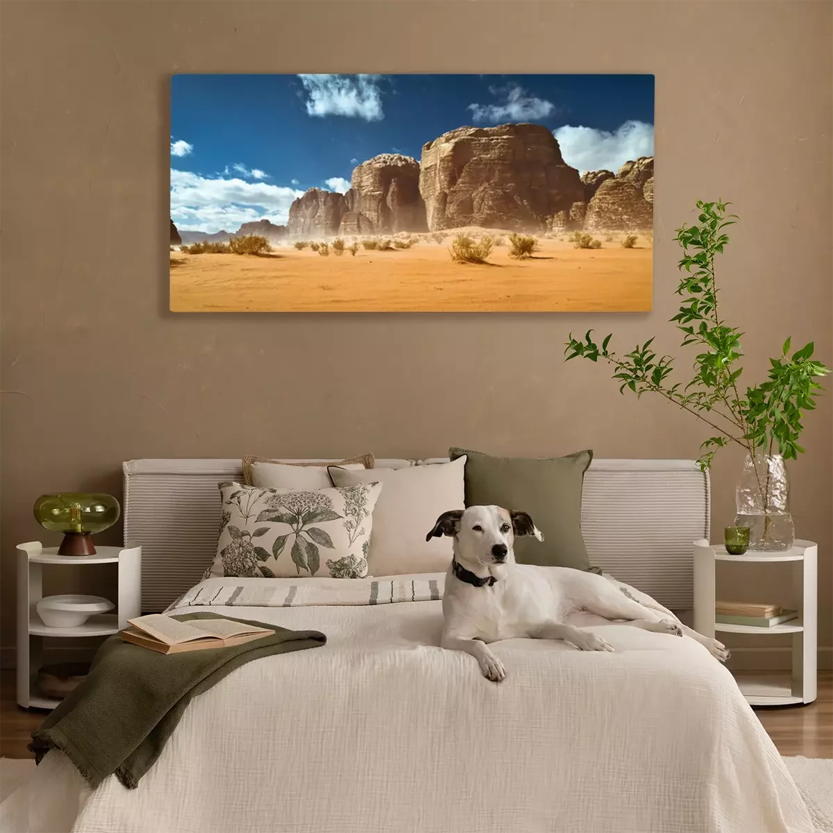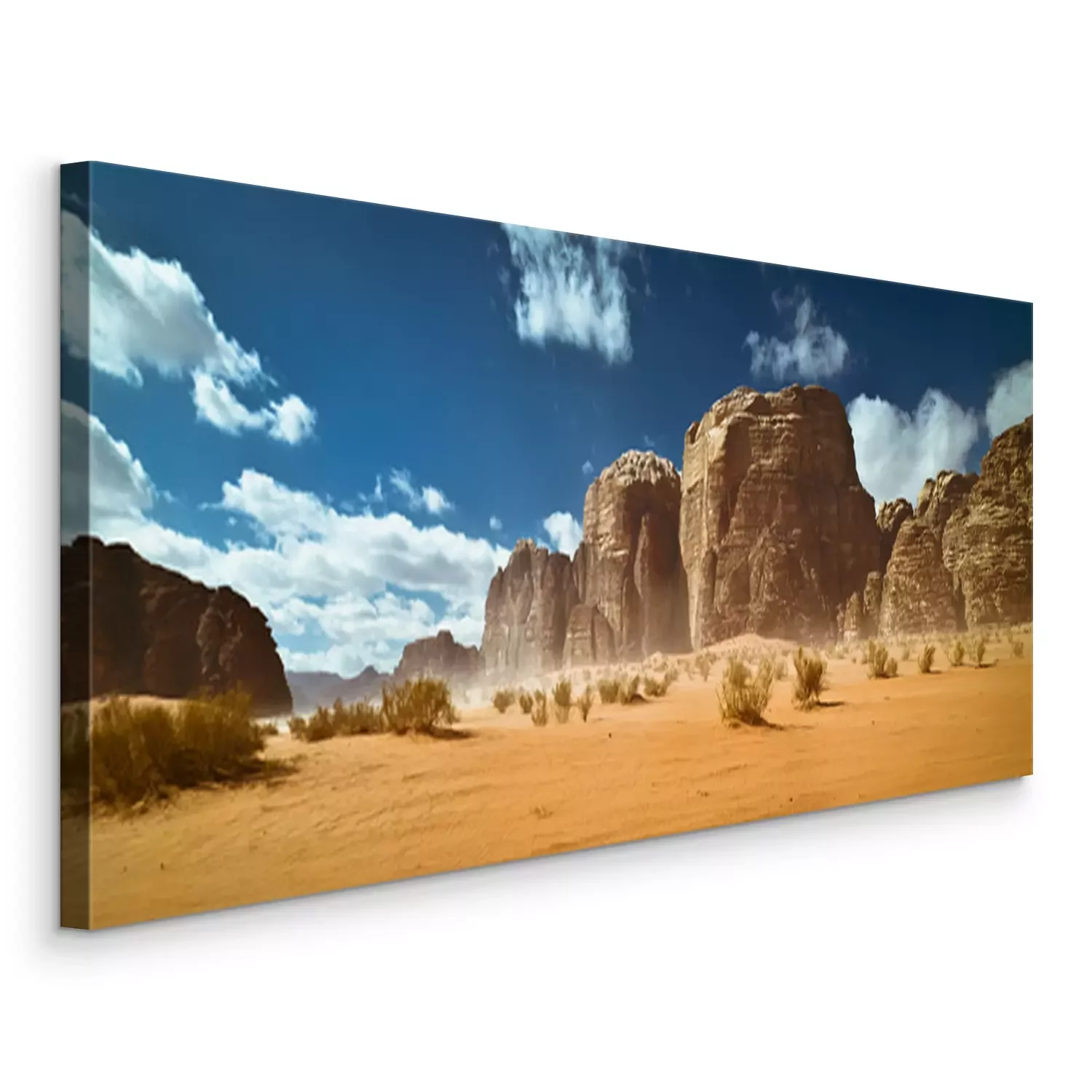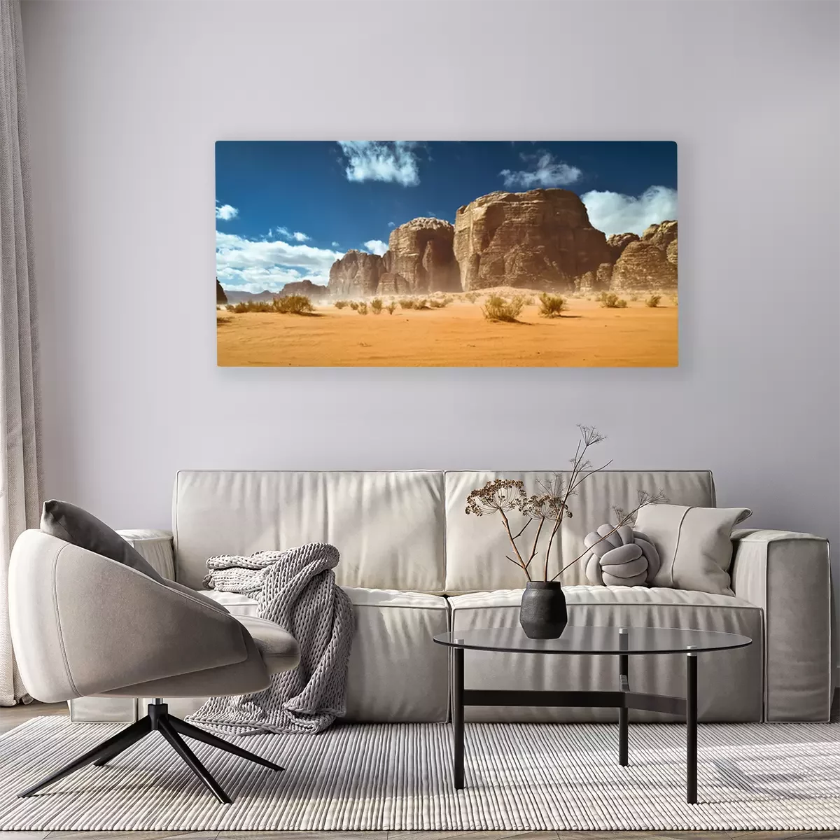 Tableau  Nature and rocks of Wadi Rum or Valley of the Moon desert, Jordan, sand storm