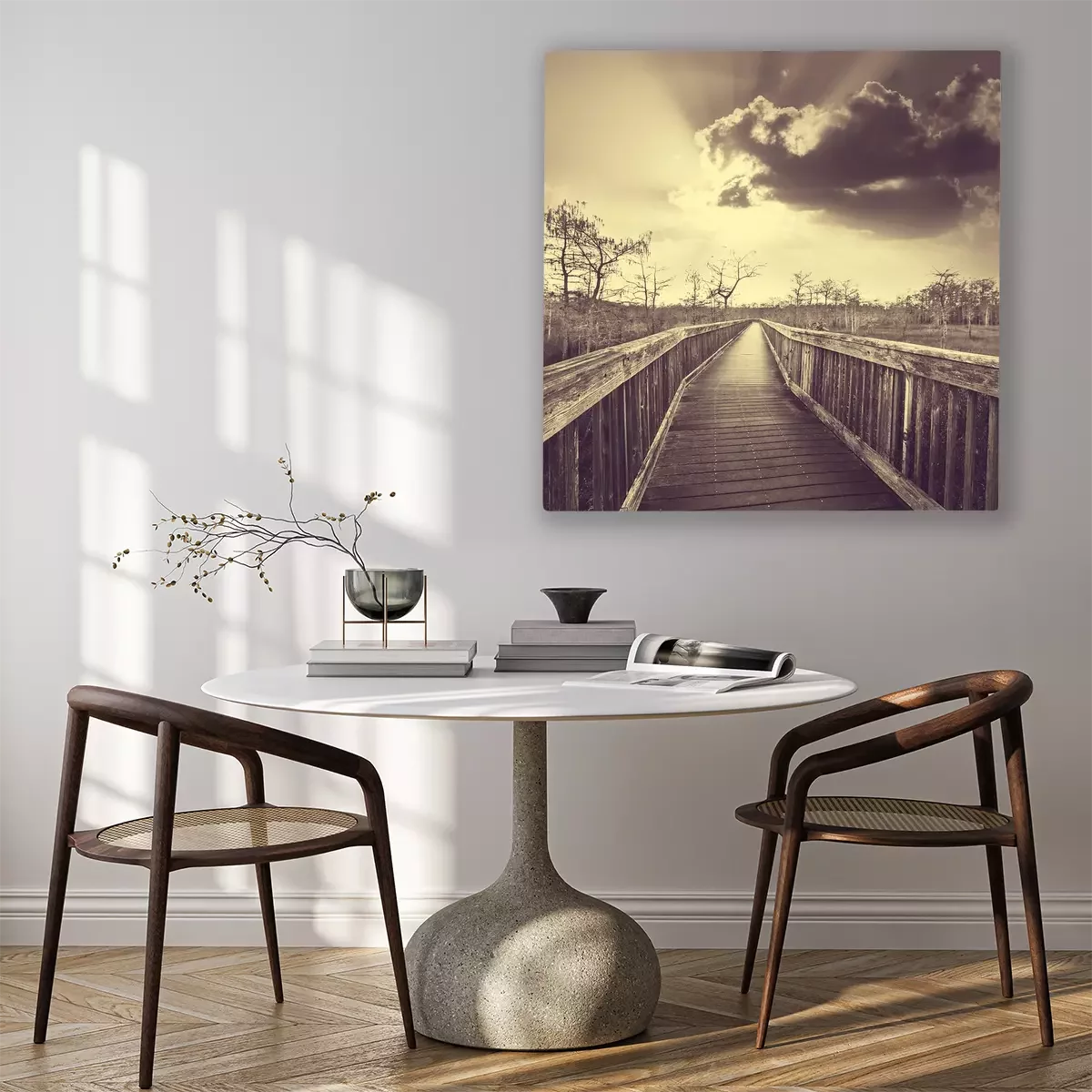 L'impression est réalisée sur une toile de haute qualité tendue sur un châssis. Puisque les bords latéraux de l’image sont également imprimés, il n'est pas nécessaire d'opter pour un cadre supplémentaire. Nous recommandons également les solutions composées de plusieurs images permettant de profiter d’une composition harmonieuse.