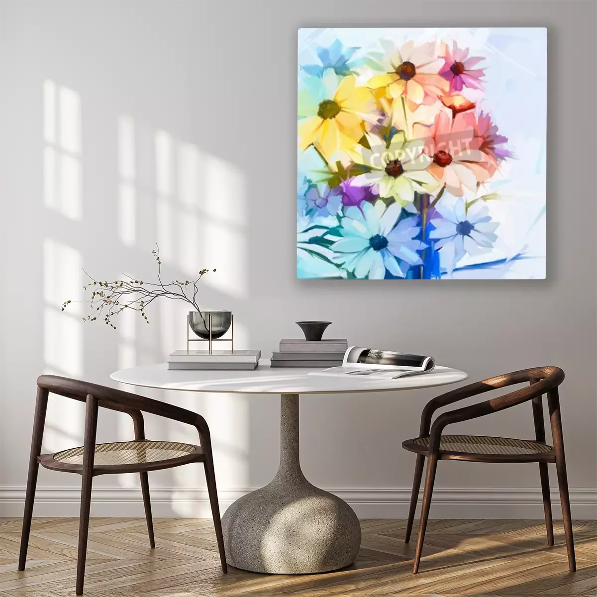 L'impression est réalisée sur une toile de haute qualité tendue sur un châssis. Puisque les bords latéraux de l’image sont également imprimés, il n'est pas nécessaire d'opter pour un cadre supplémentaire. Nous recommandons également les solutions composées de plusieurs images permettant de profiter d’une composition harmonieuse.