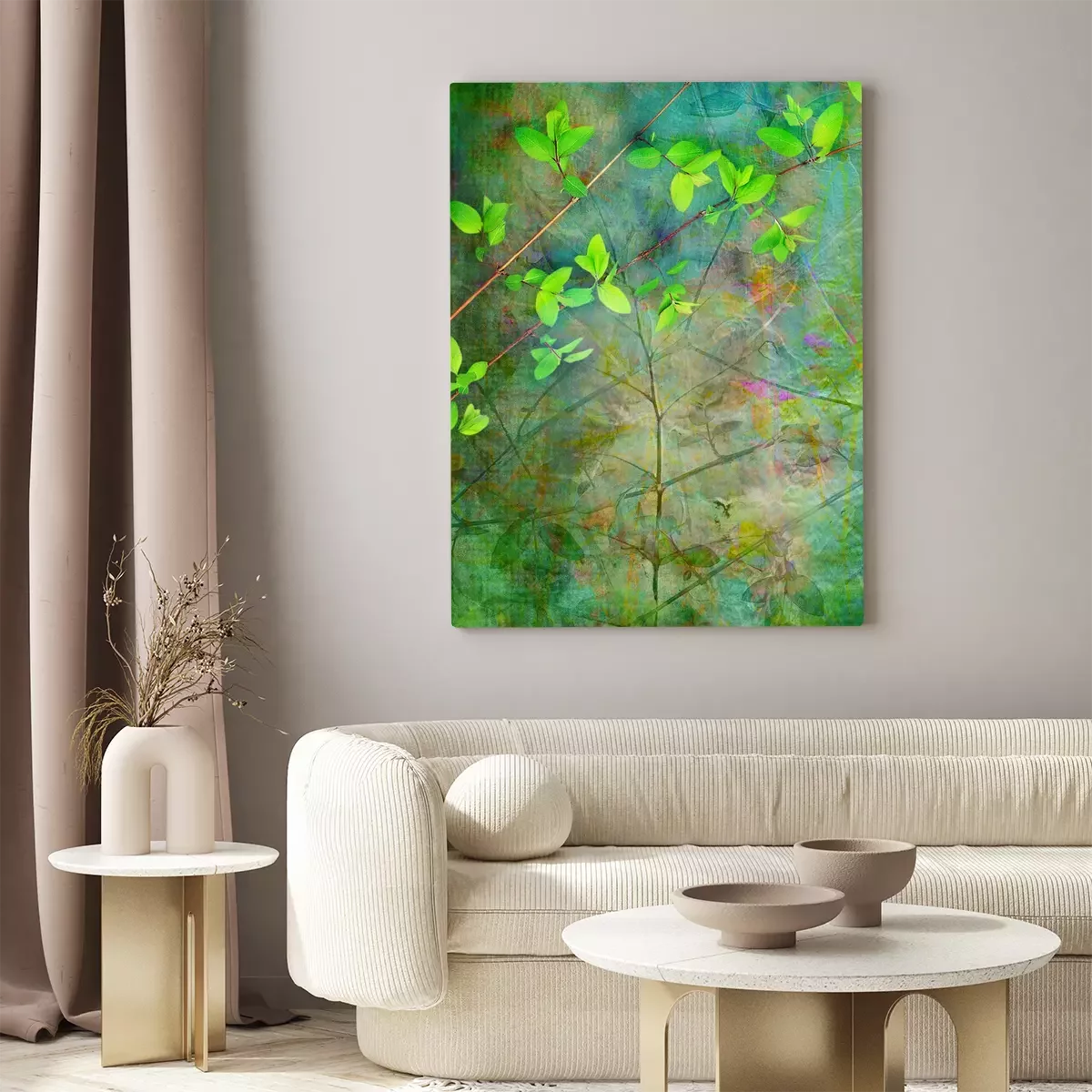 Tableau  Nature sur fond vert